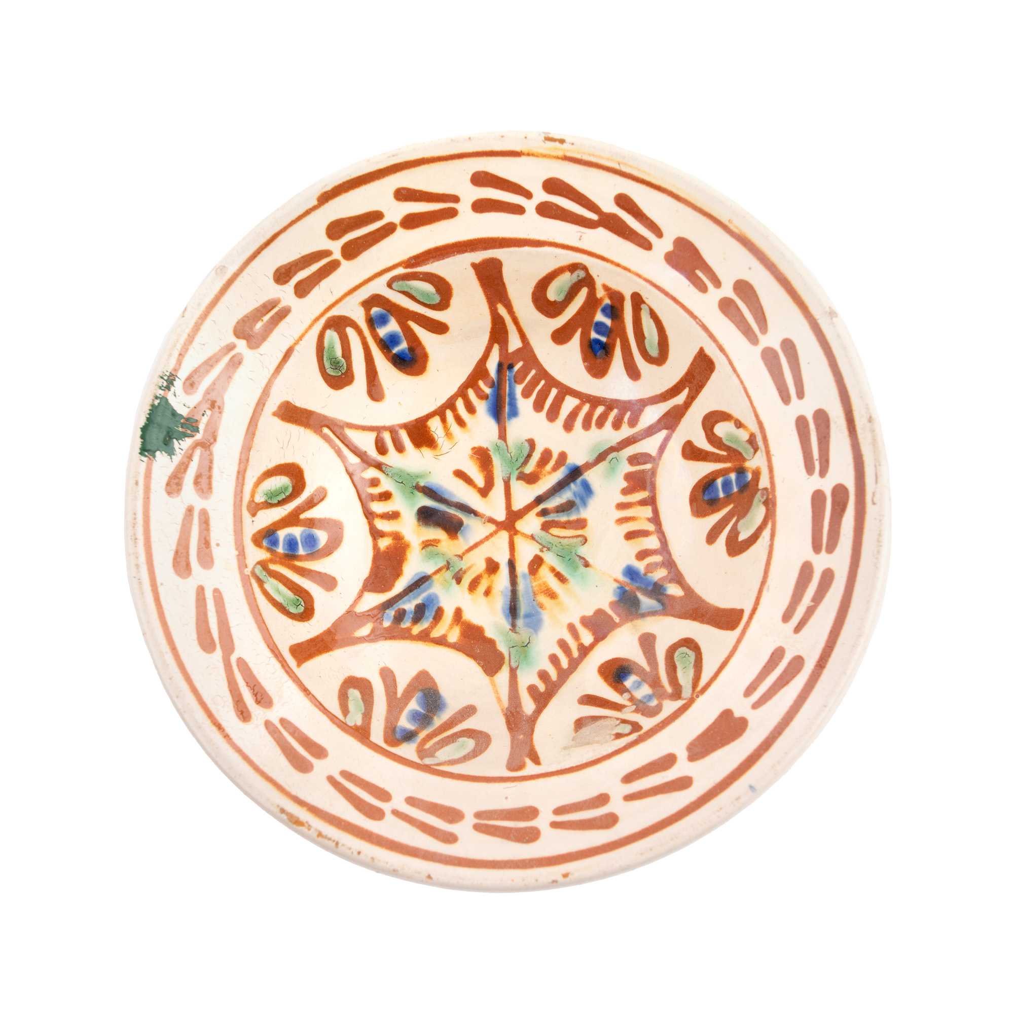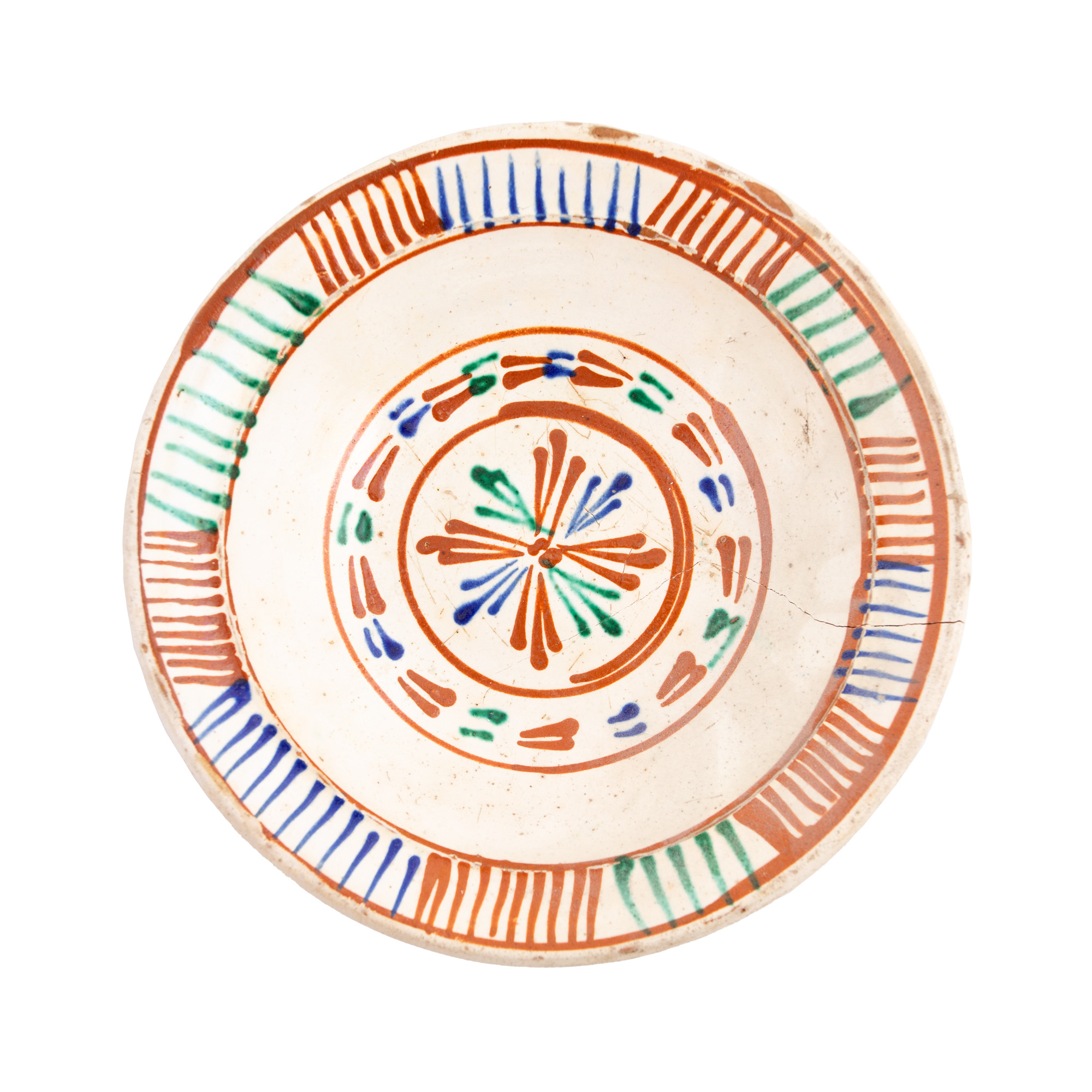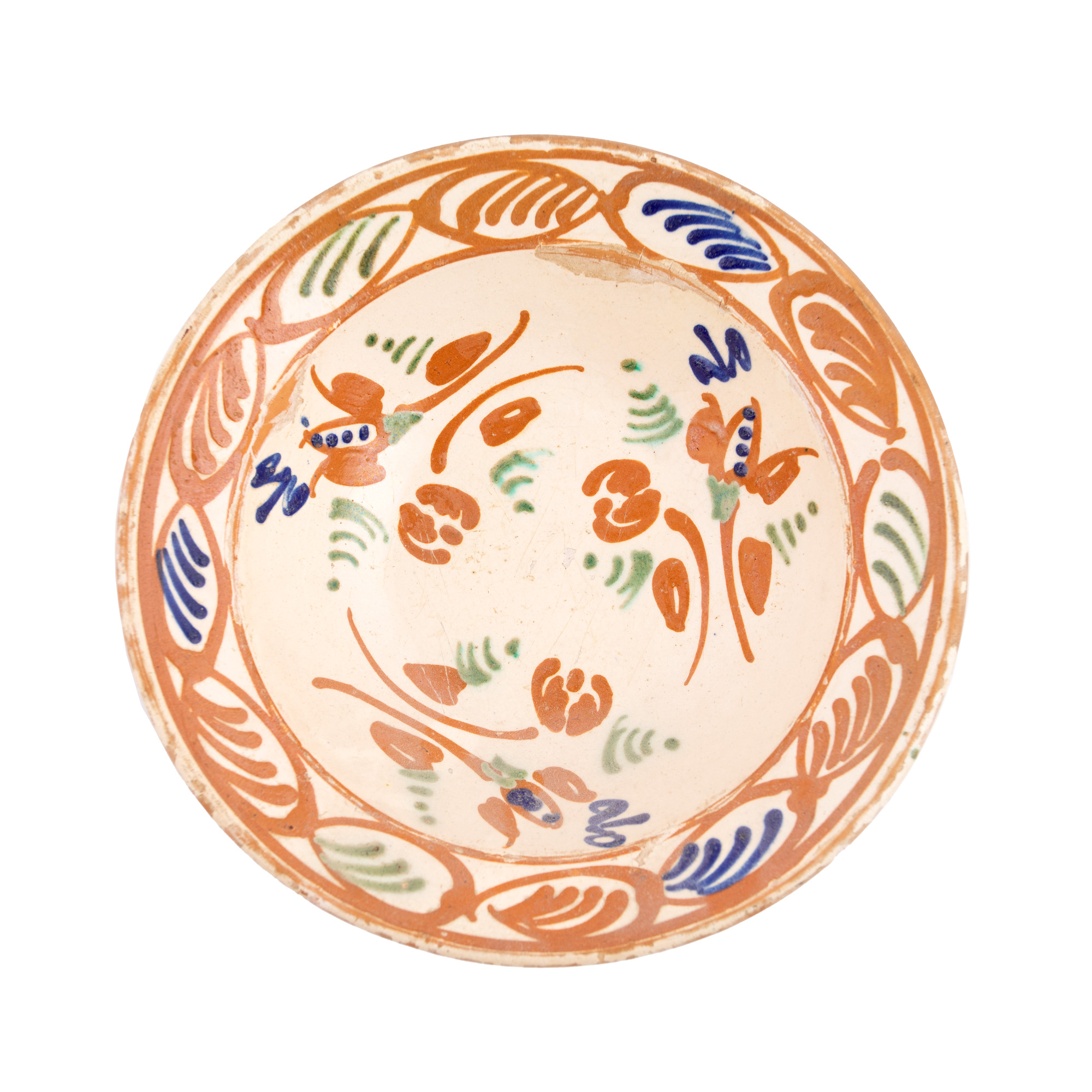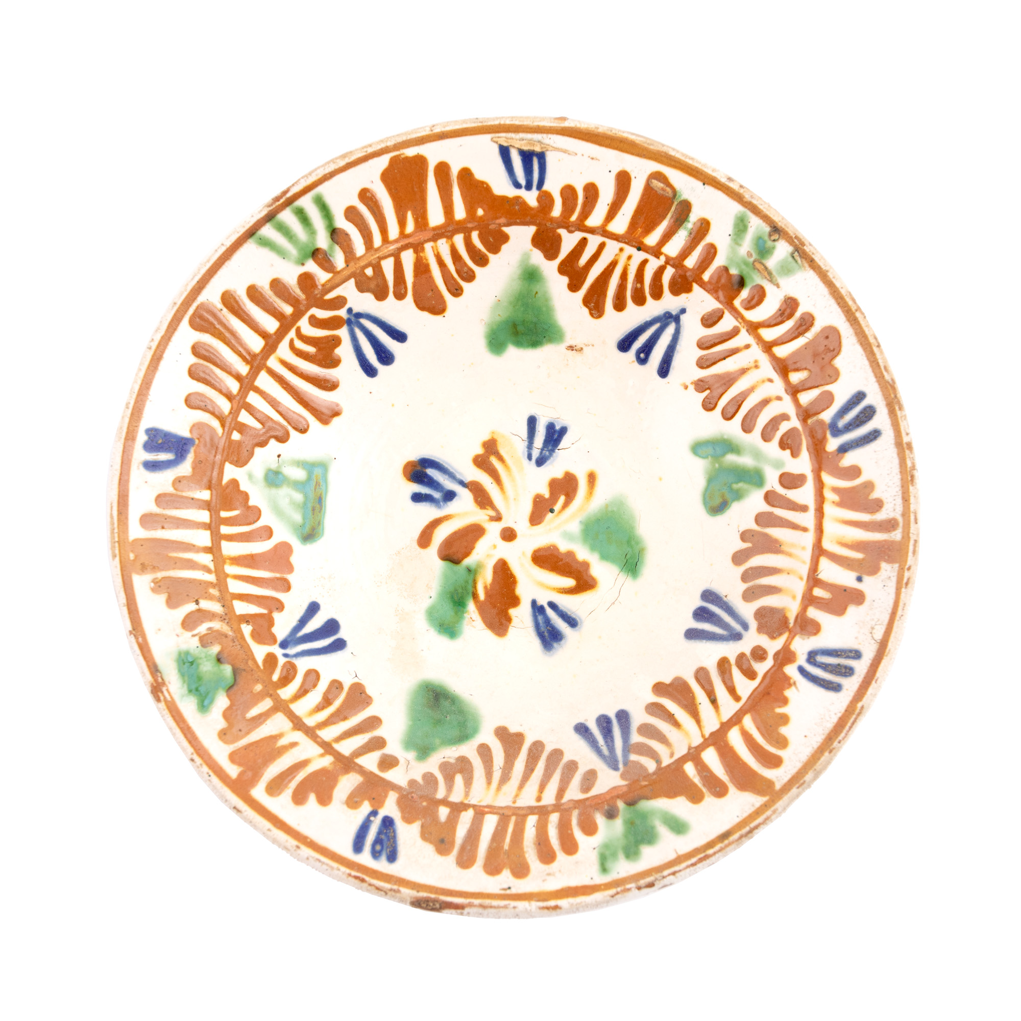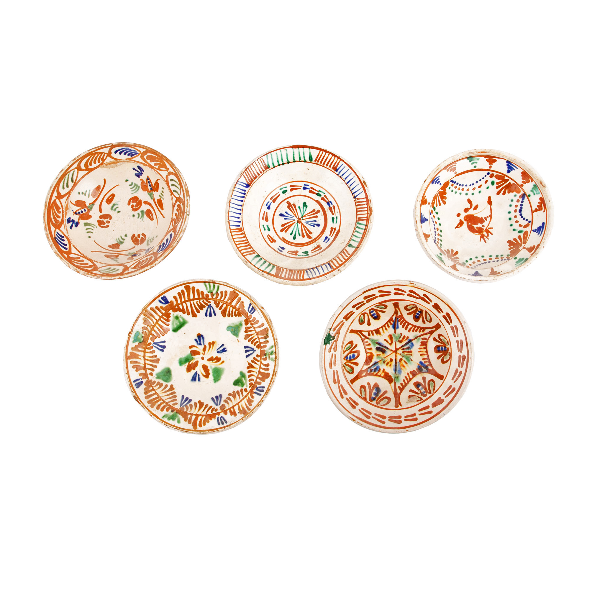 60. Lot format din cinci farfurii, decorate cu motive vegetale stilizate, Făgăraș, sfârșitul sec. XIX
