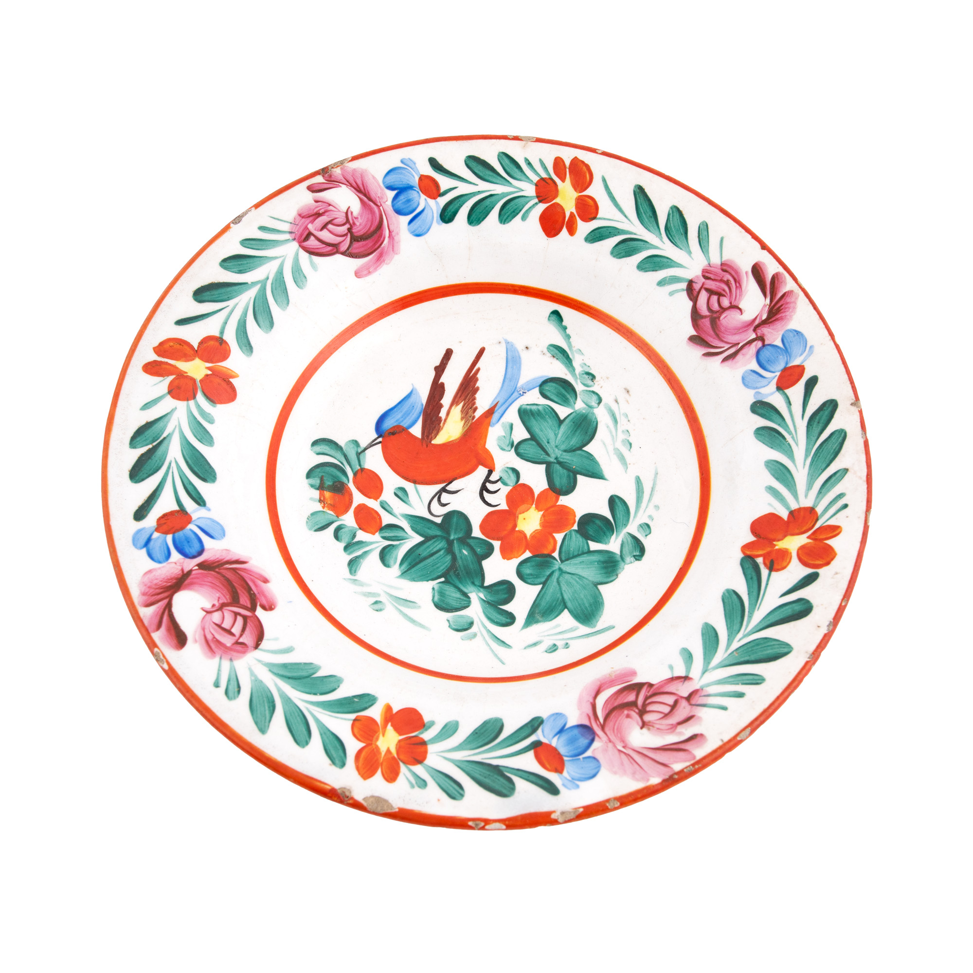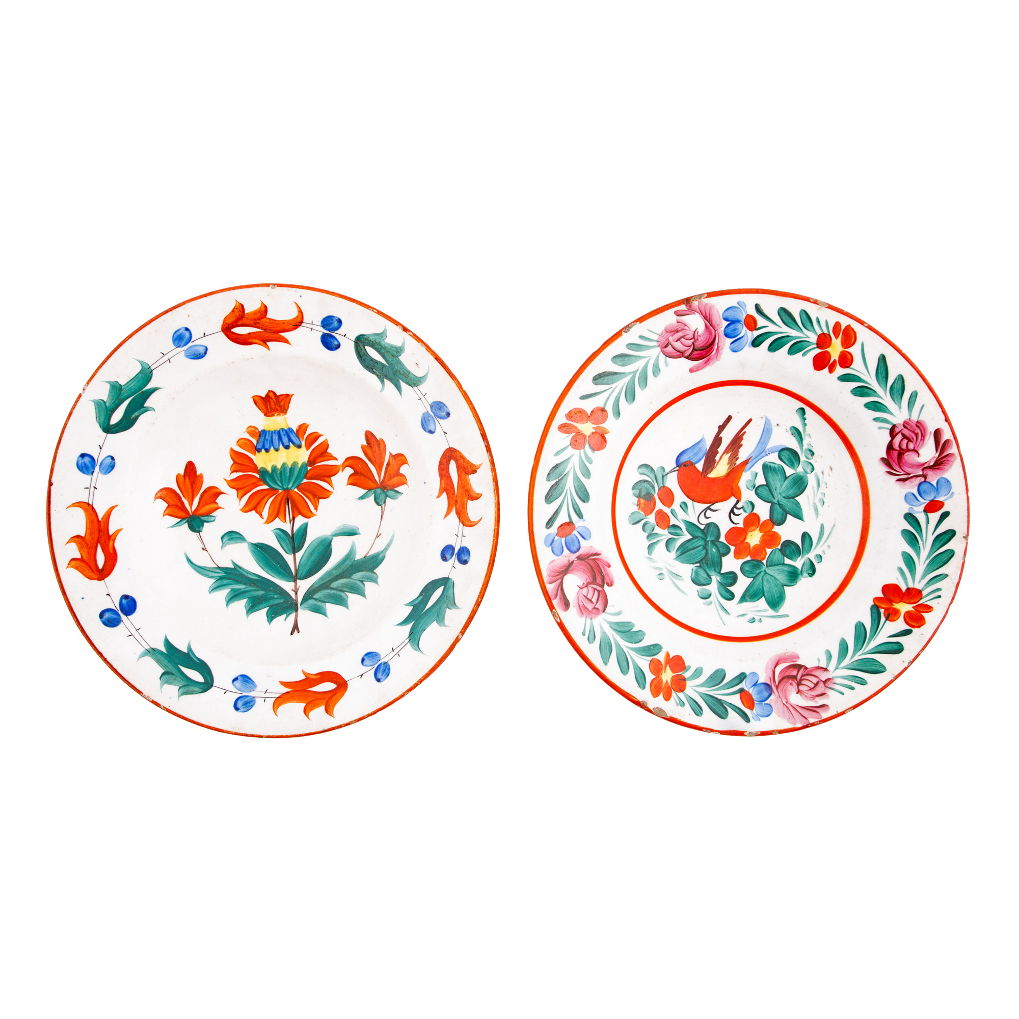 59. Pereche de farfurii din ceramică, pictate cu motive avimorfe și florale, atelier austro-ungar, sfârșitul sec. XIX