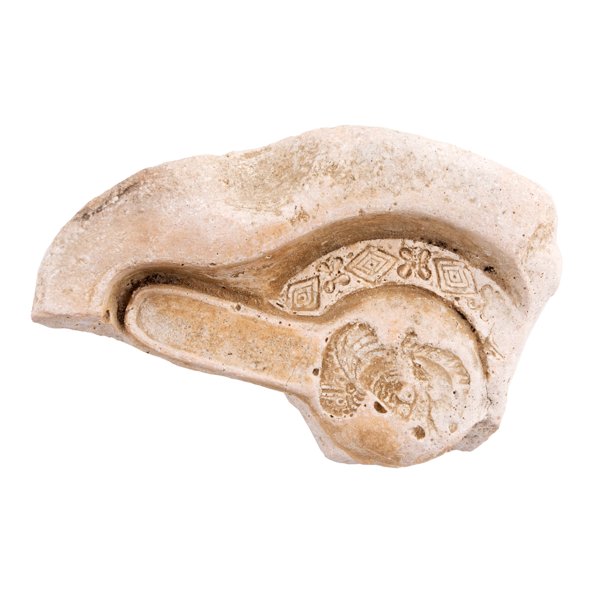 38. Tipar de opaiț roman protocreștin, ilustrând o figură feminină, posibil împărăteasa Fausta, sec. VI e.n.
