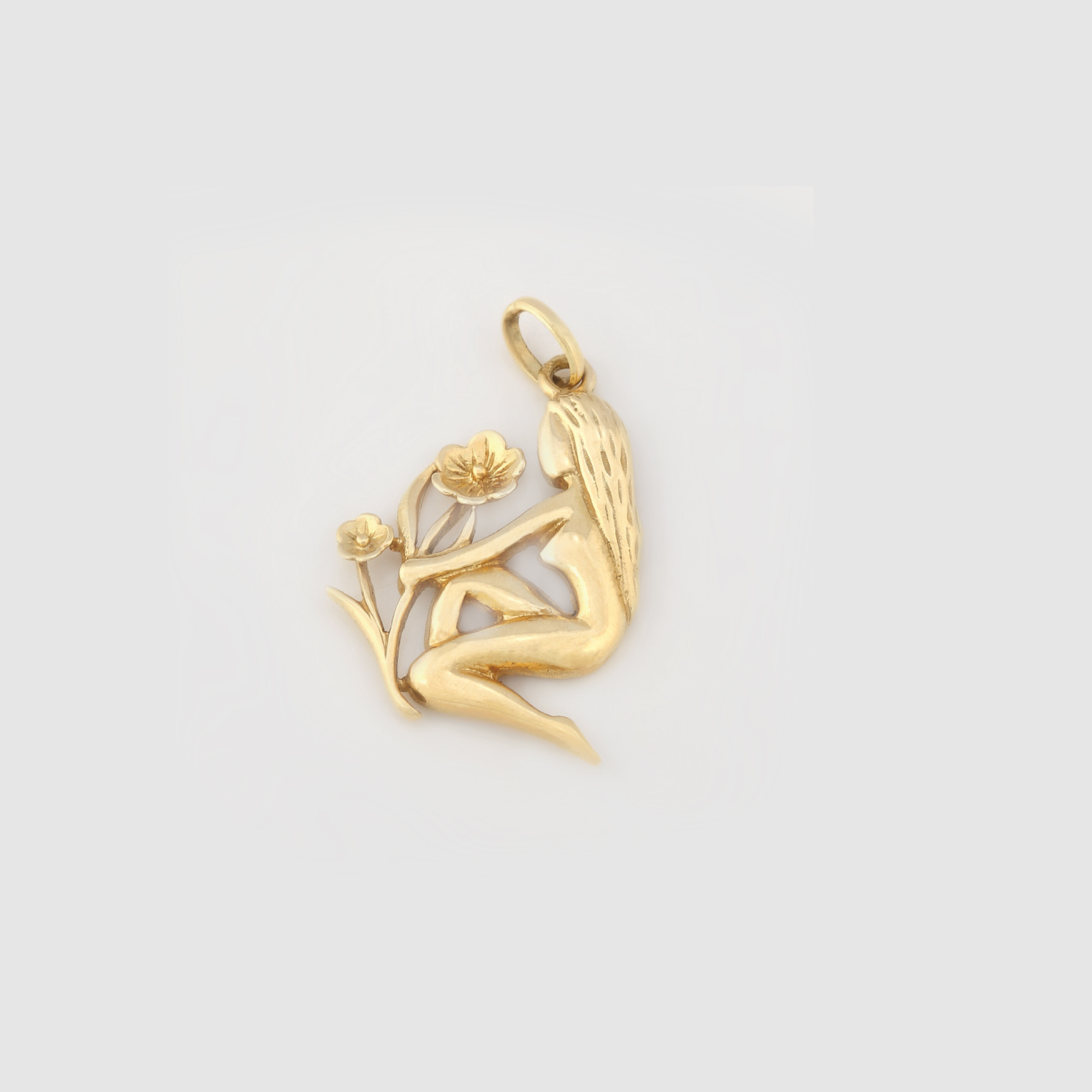 419. Pandantiv din aur, în forma unei siluete feminine culegătoare de flori
