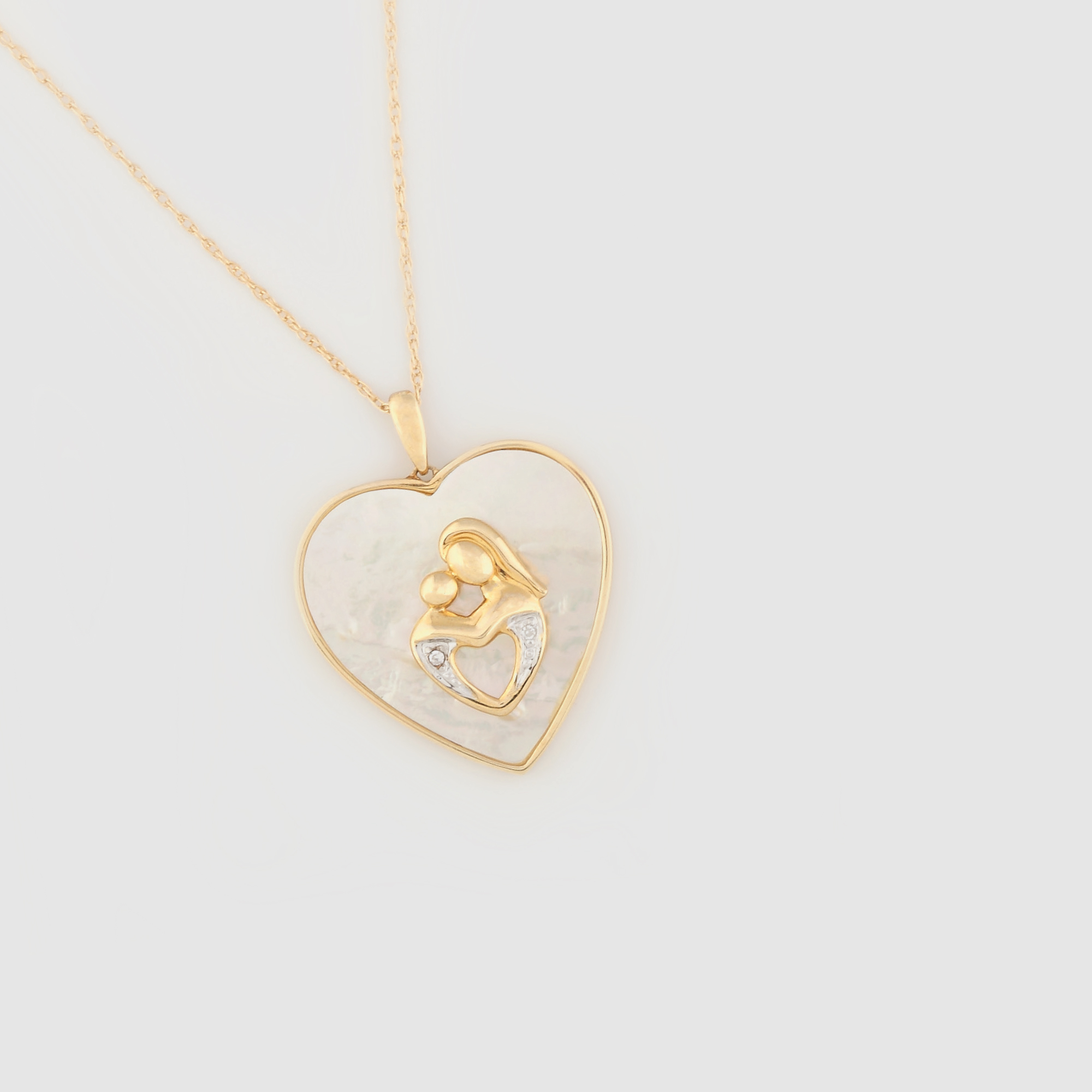 421. Lanț cu pandantiv din aur, decorat cu sidef, stilizare a scenei "Madona cu pruncul"