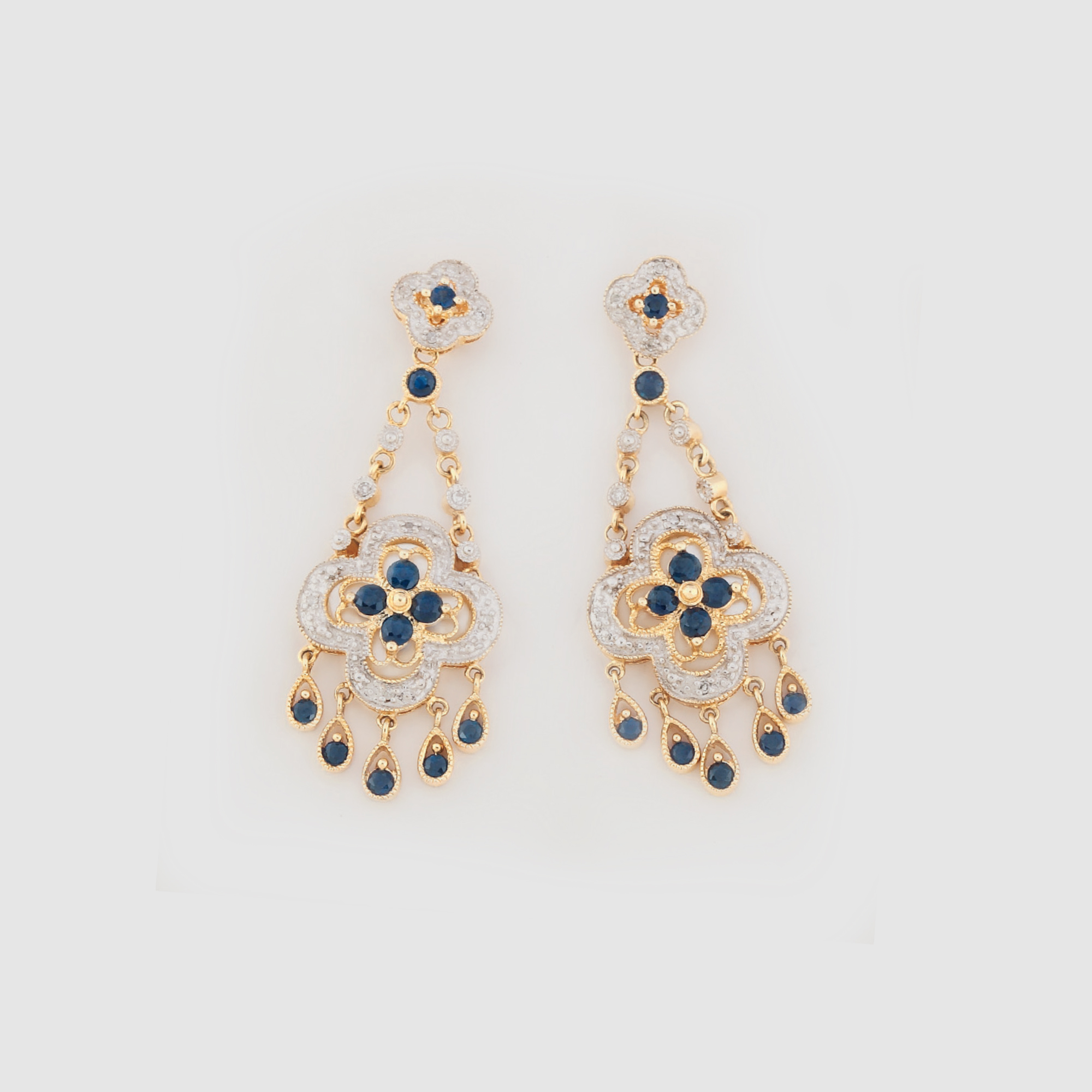 434. Pereche de cercei de inspirație orientală, decorată cu diamante, safire și sidef