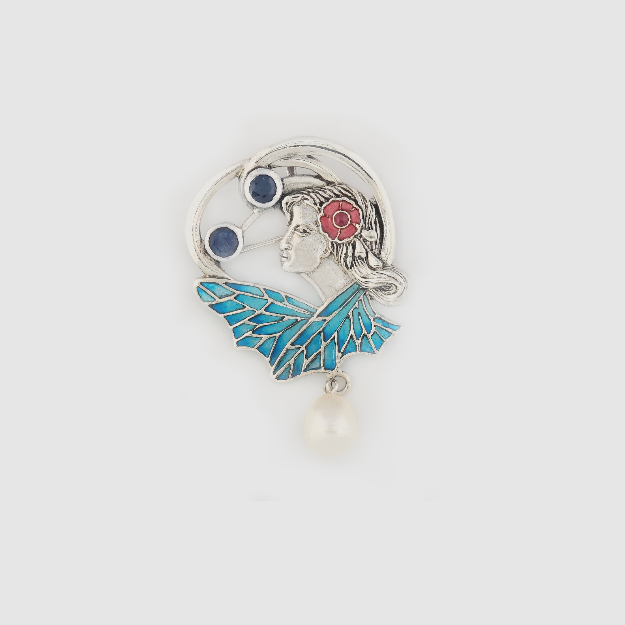 436. Broșă-pandant din argint, decorată în manieră Art Nouveau, cu perlă și email