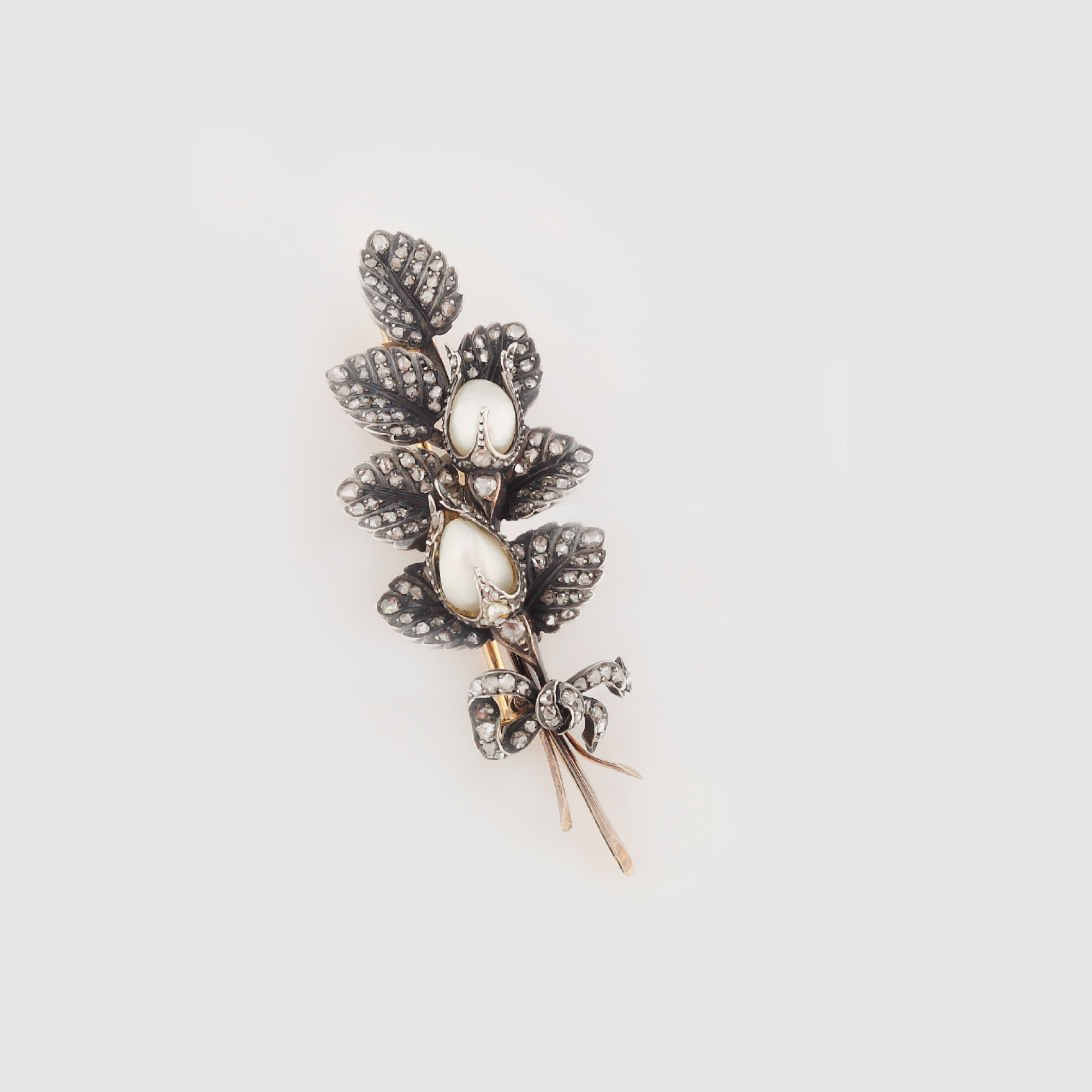 437. Broșă vintage, din aur și argint, decorată cu diamante și perle, cca. 1900