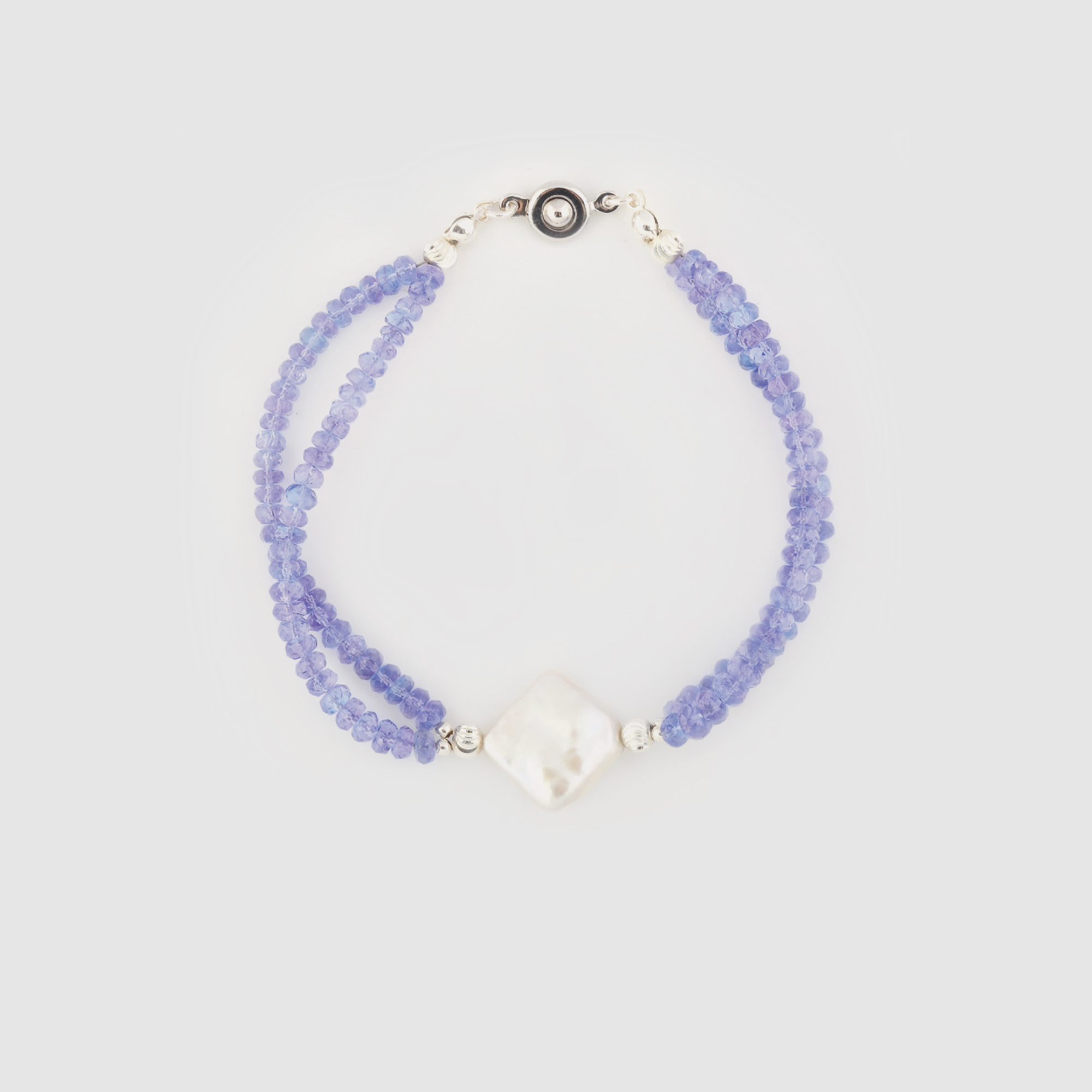 438. Brățară decorată cu șiruri de tanzanite și perlă
