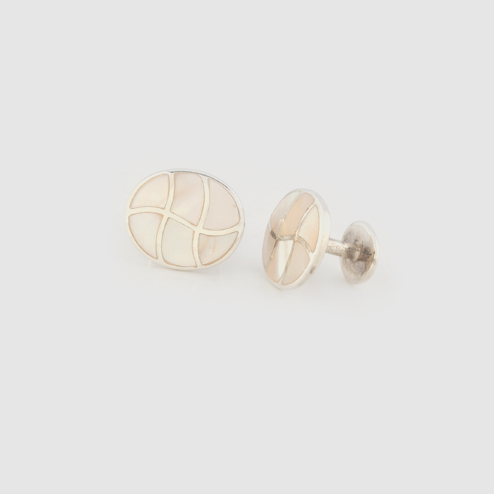 439. Pereche de butoni din argint, decorată cu sidef