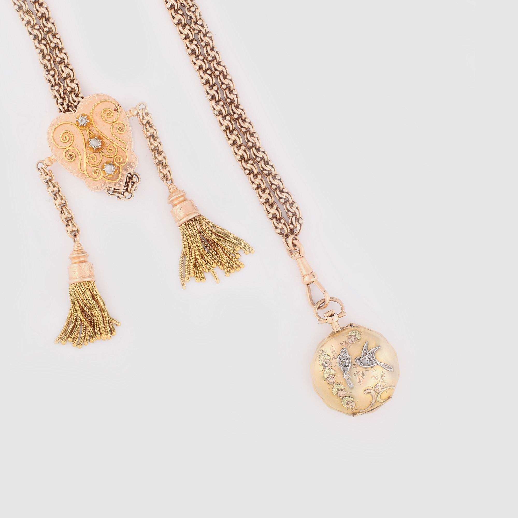 448. Excepțional lanț cu ceas de buzunar, din aur, 1900-1920