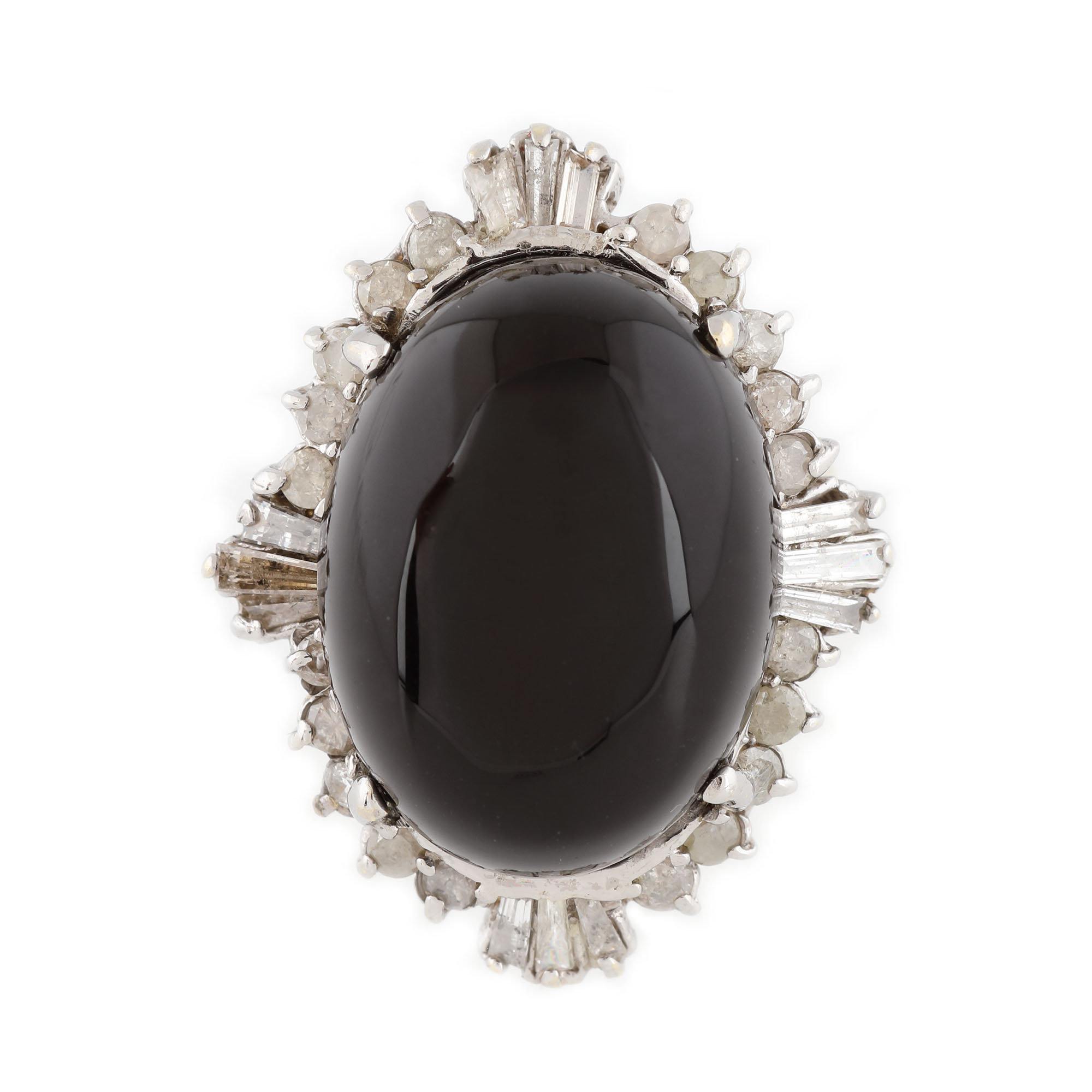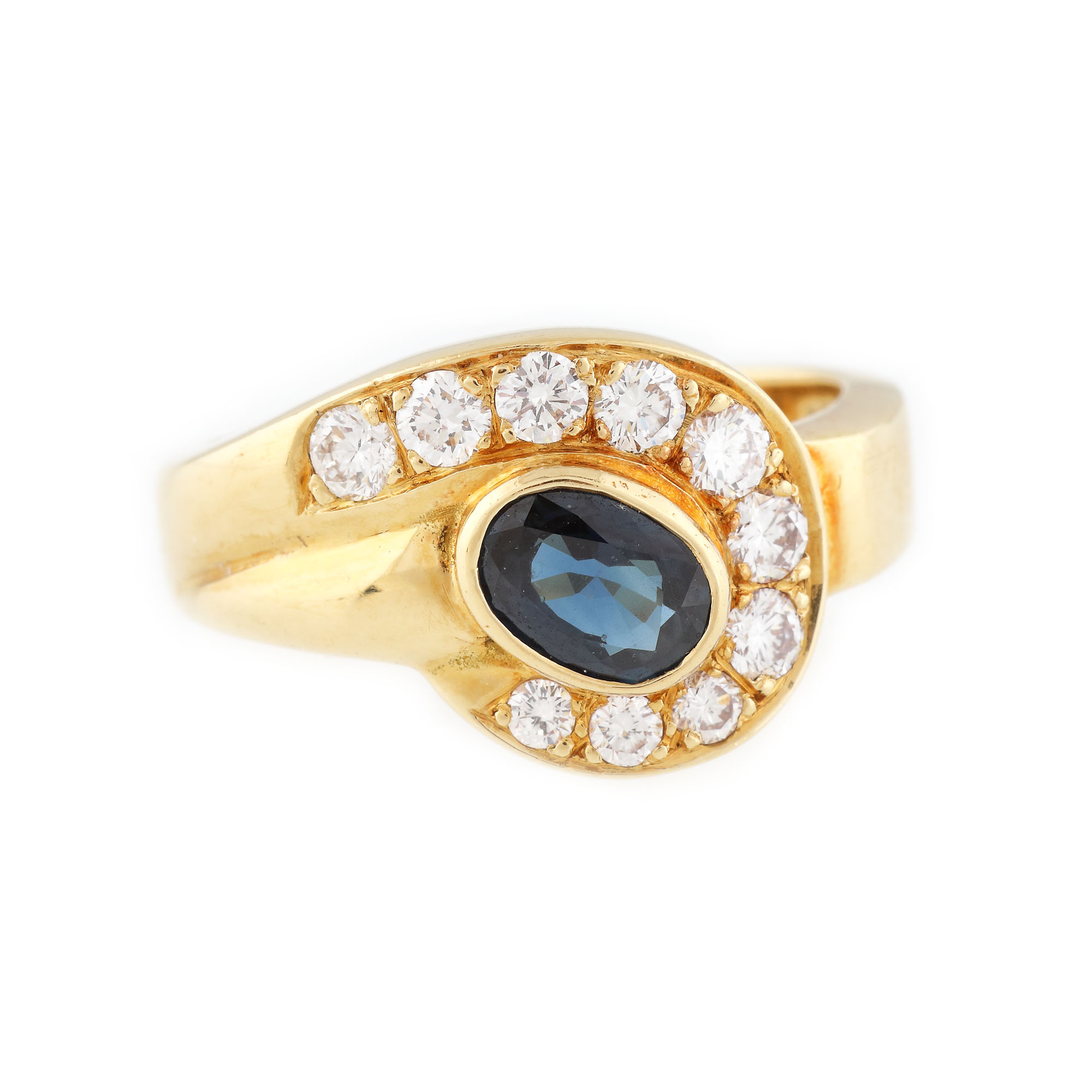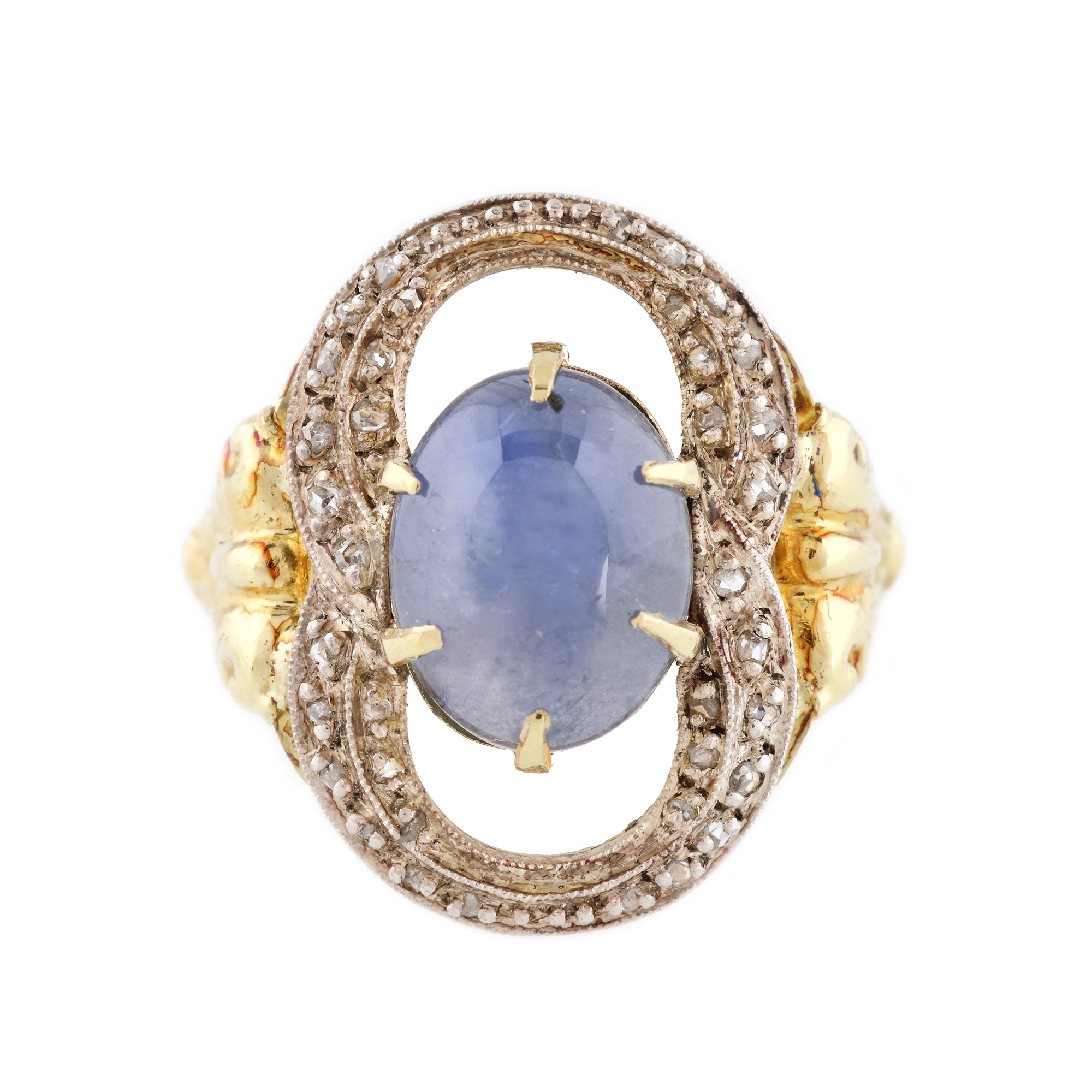 7. Inel din aur, decorat cu diamante și safir caboșon
