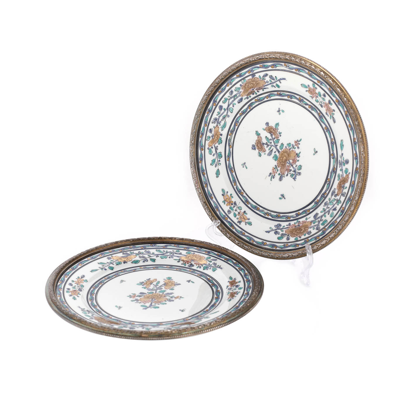 23. Pereche de platouri din porțelan, cu decor chinois și montură din argint