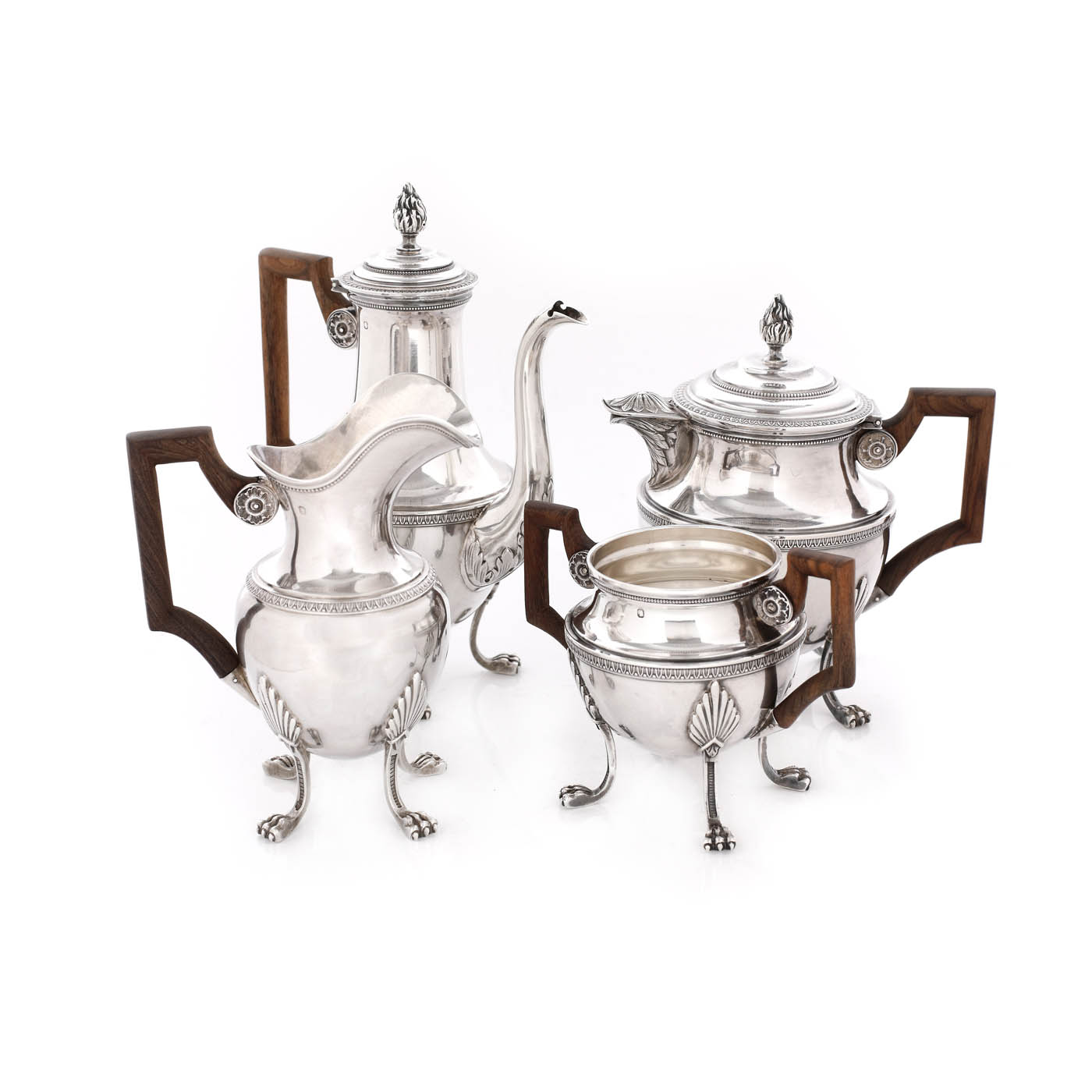 26. Serviciu din argint, format din ceainic, cafetieră, zaharniță și letieră, cca. 1900