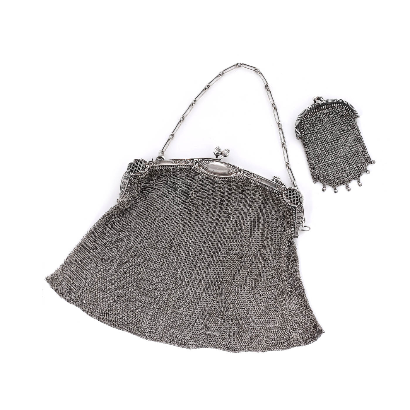 21. Poșetă și port-monnaie Art Deco, din zale de argint, 1900-1910