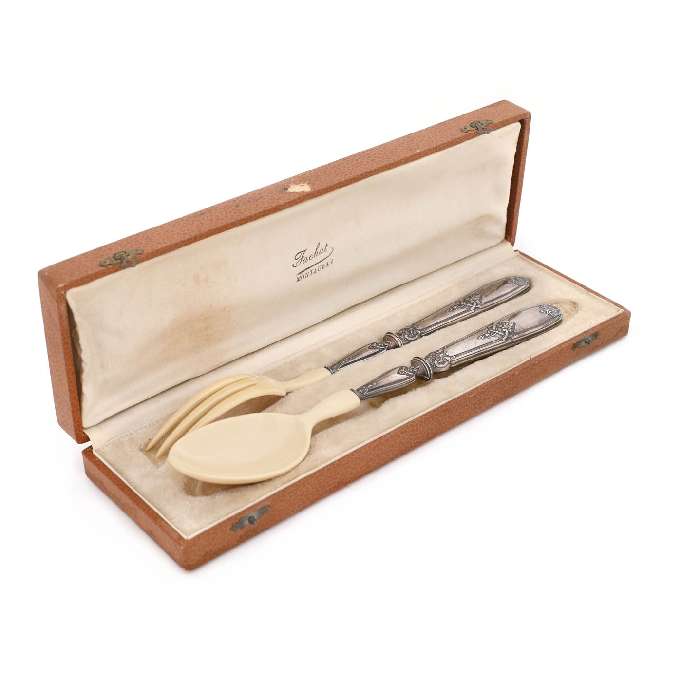 28. Pereche de tacâmuri din argint și fildeș, pentru salată, 1890-1900