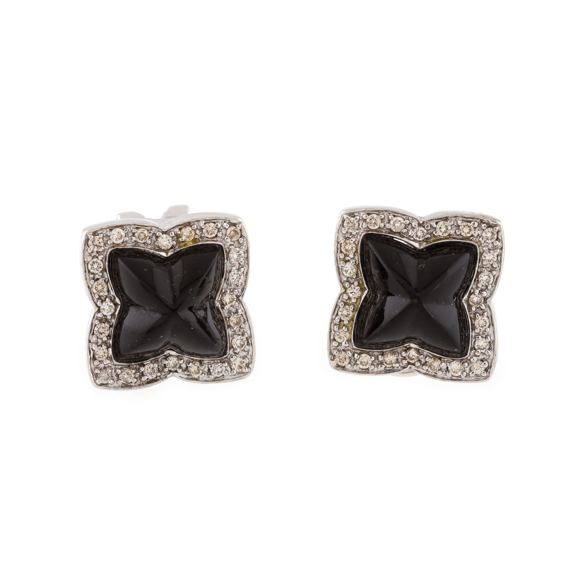 10. Pereche de cercei din aur alb, decorată cu onixuri și diamante