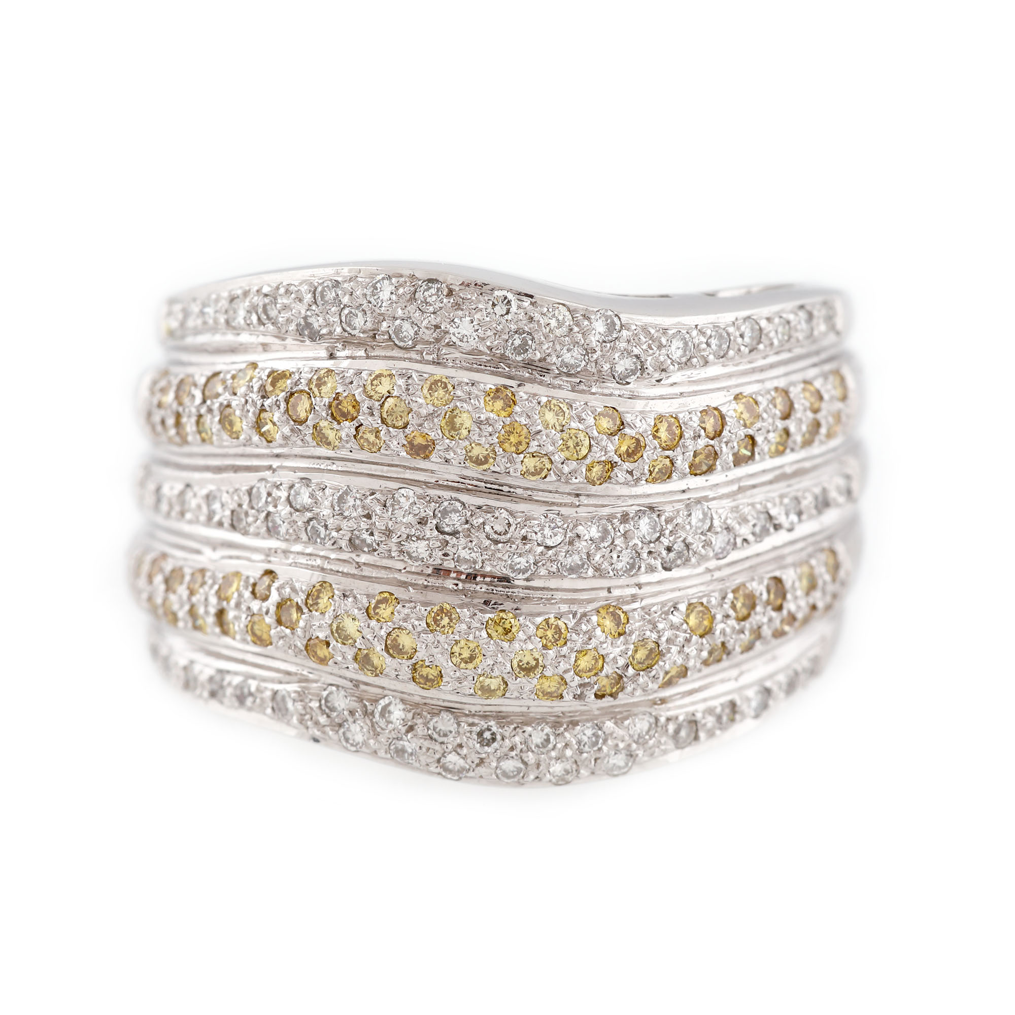 12. Inel din aur alb, pavat cu diamante albe și galbene