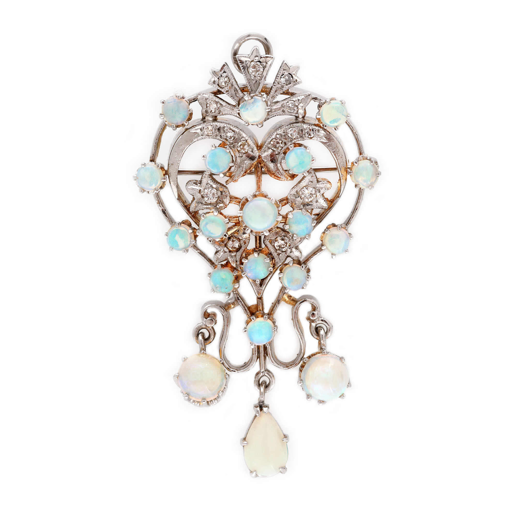 8. Broșă-pandantiv din aur alb, decorat cu opale și diamante