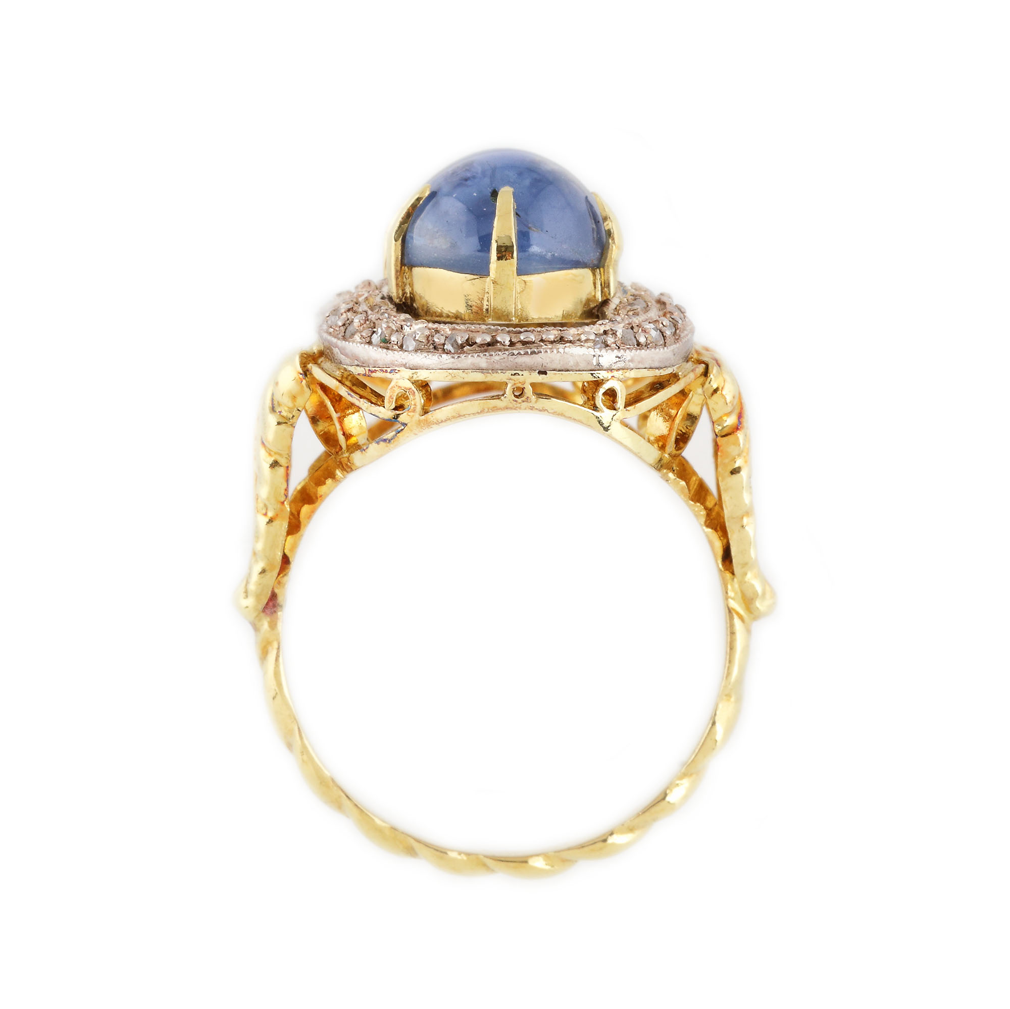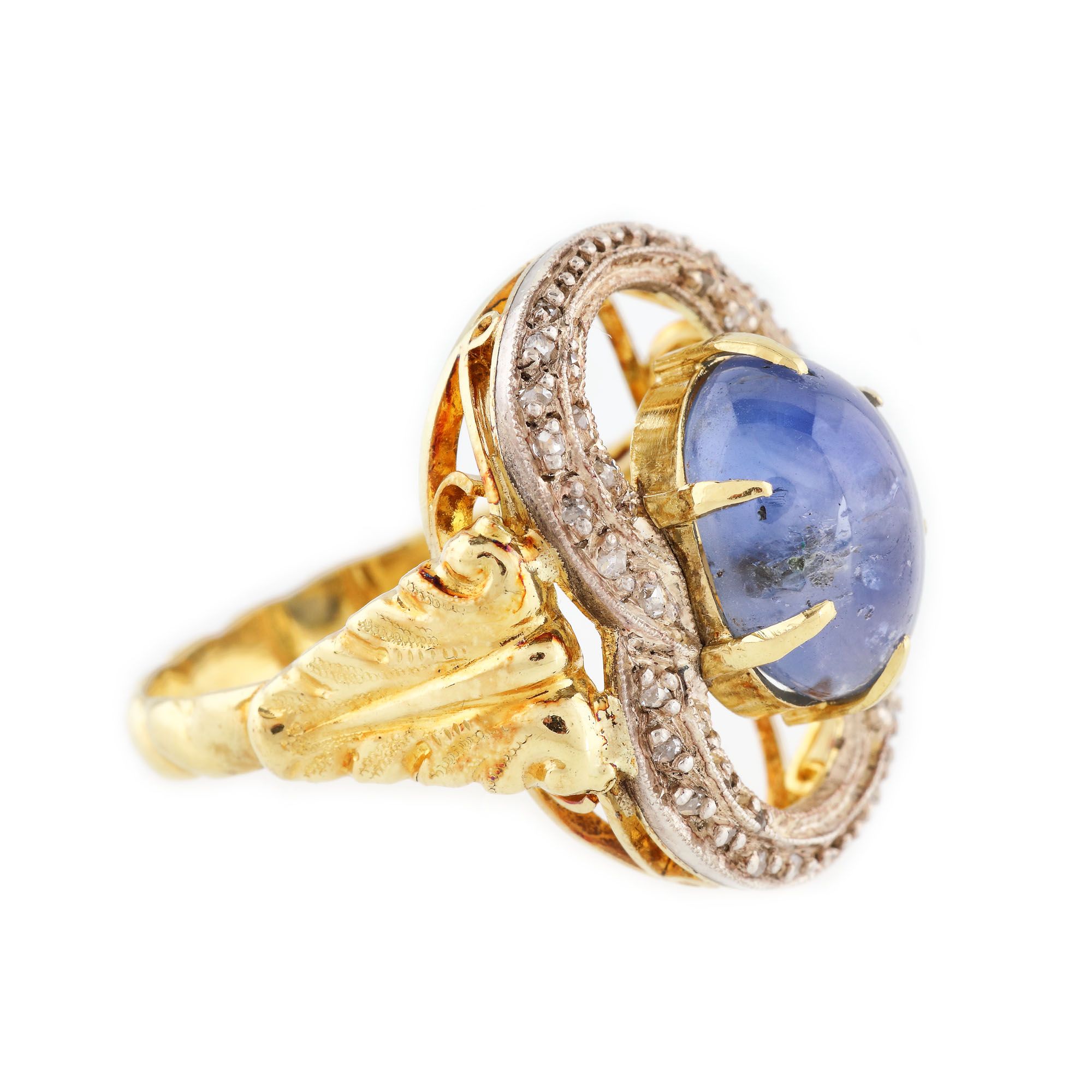 7. Inel din aur, decorat cu diamante și safir caboșon