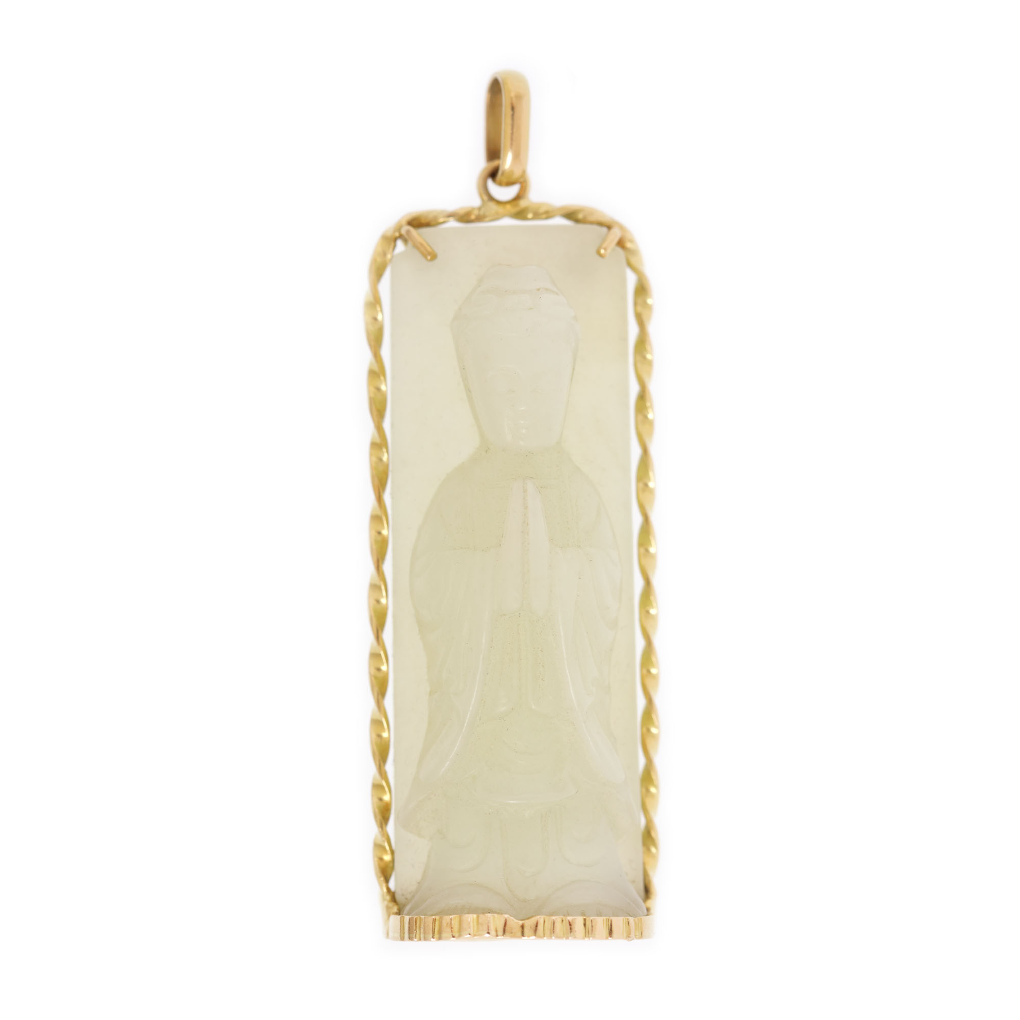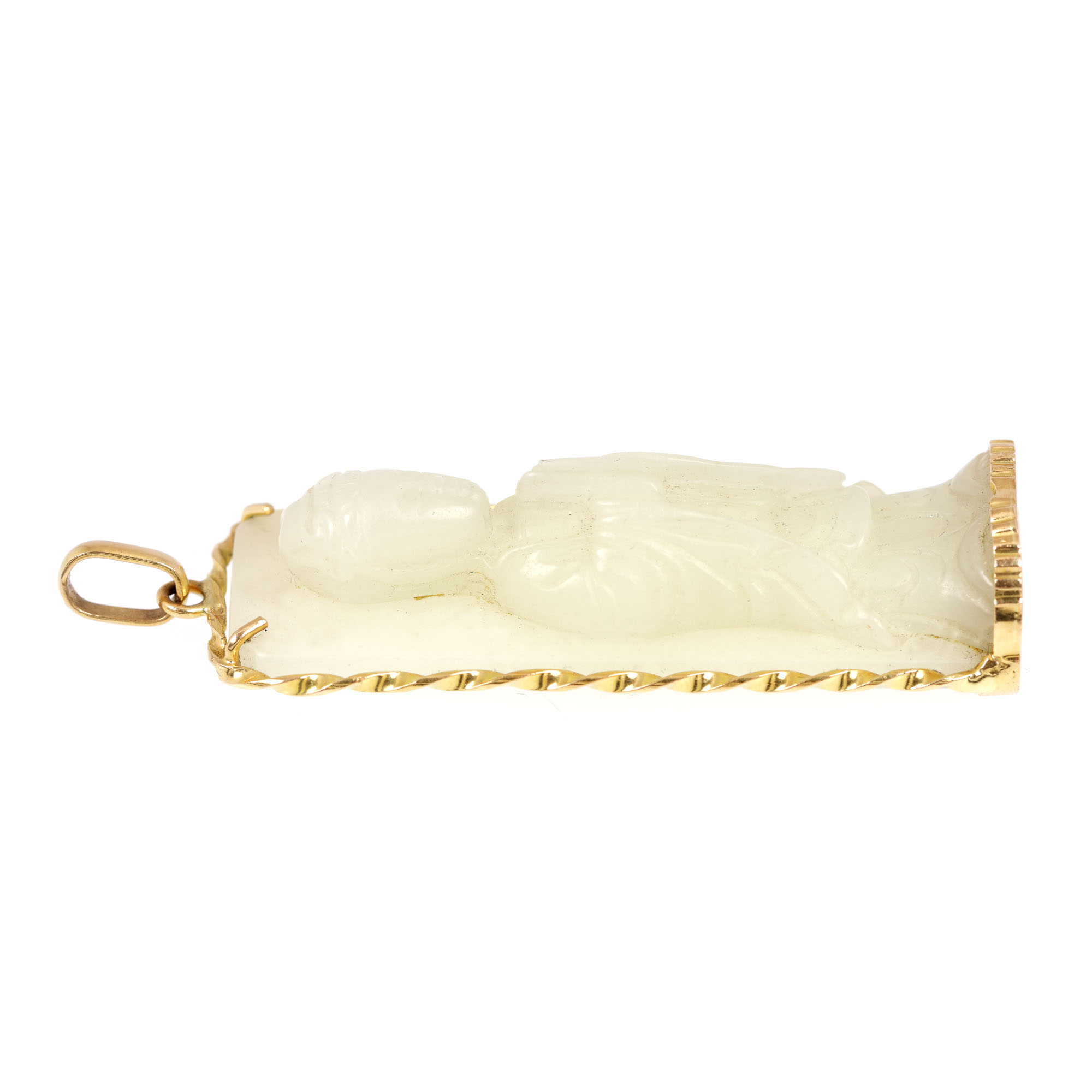 45. Pandantiv Buddha sculptat în jad alb, cu montură din aur