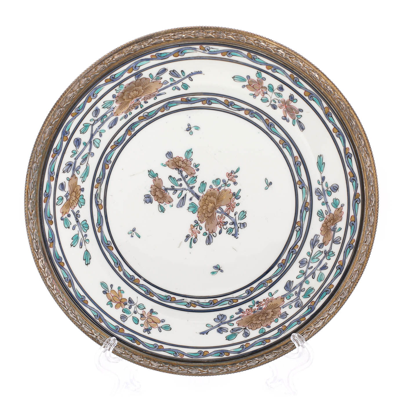 23. Pereche de platouri din porțelan, cu decor chinois și montură din argint