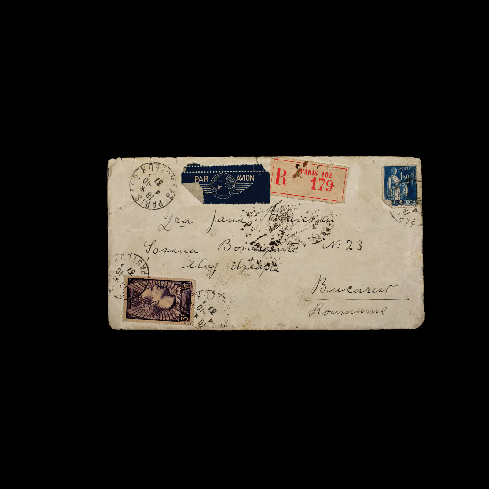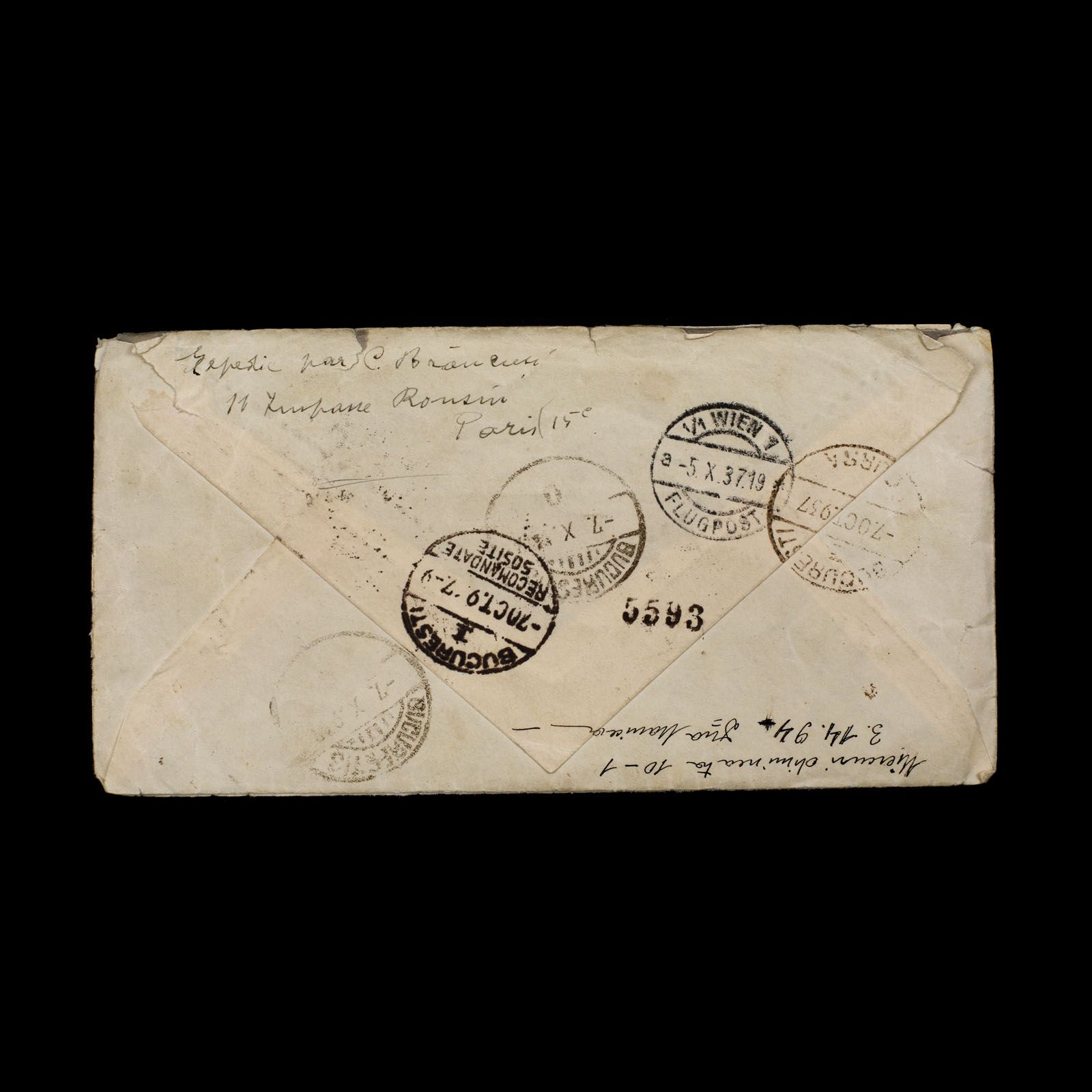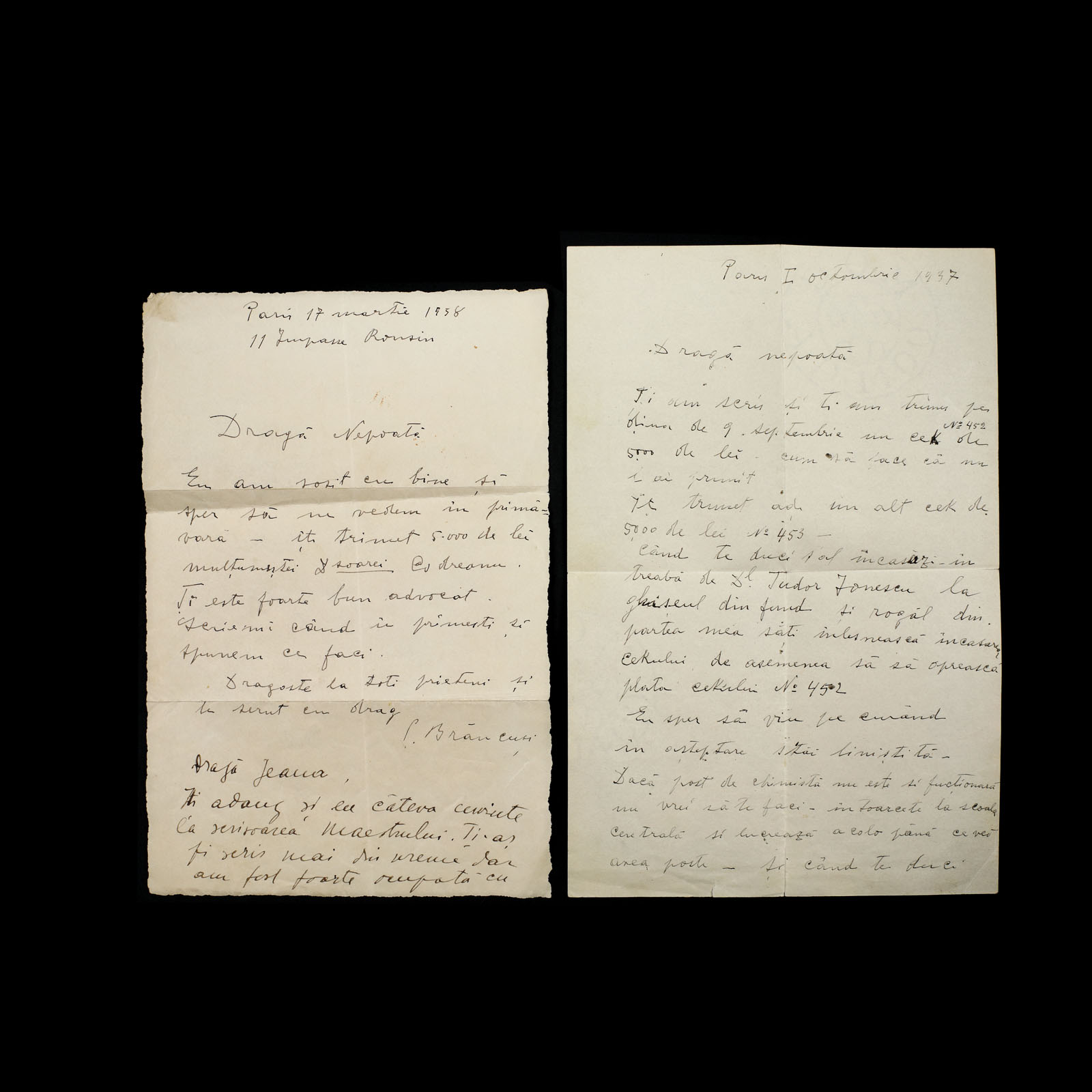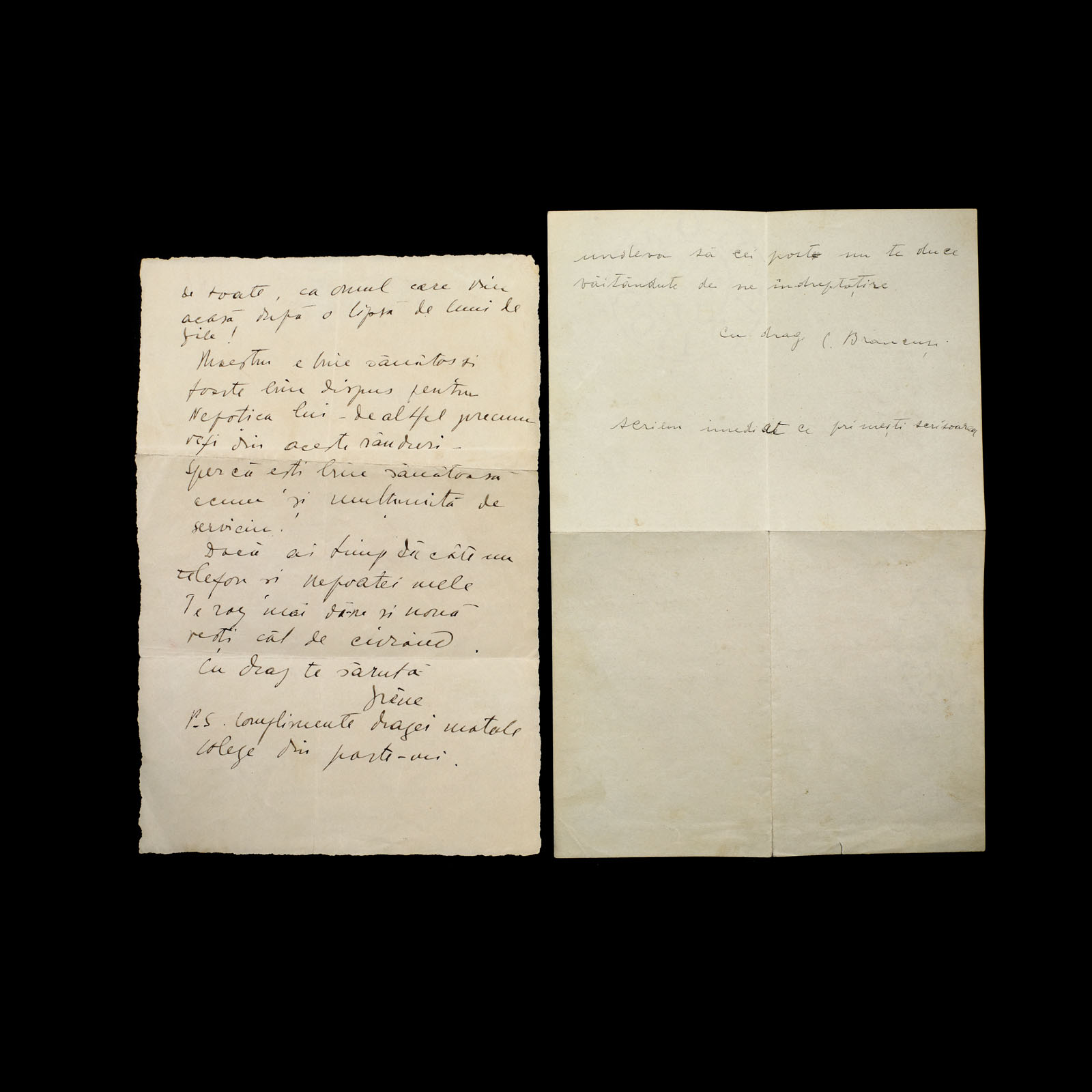 139. Inedit lot format din două scrisori olografe trimise de Constantin Brâncuși către nepoata sa Ileana Brâncuși, Paris, 1937-1938, însoțită de plicul original, piesă rară de colecție