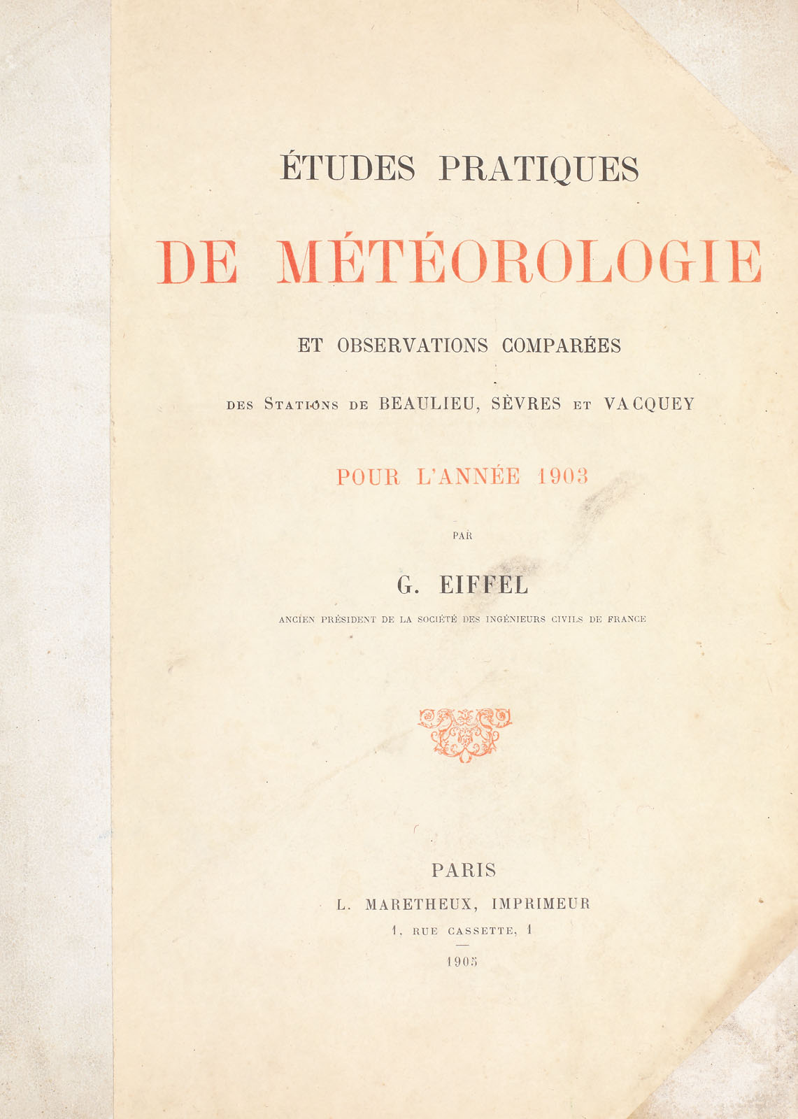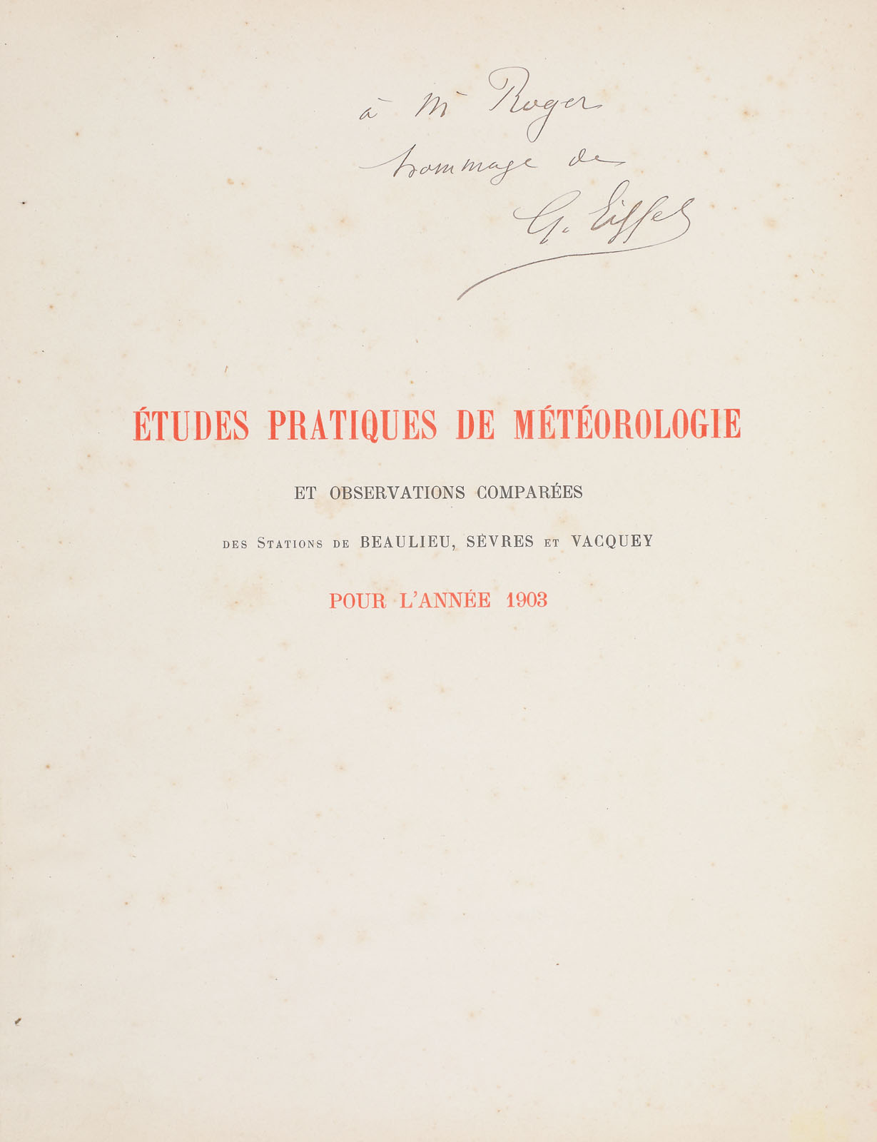 143. ”Studii și practici ale meteorologiei”, franceză, Paris, 1903, cu semnătura olografă a inginerului Gustave Eiffel