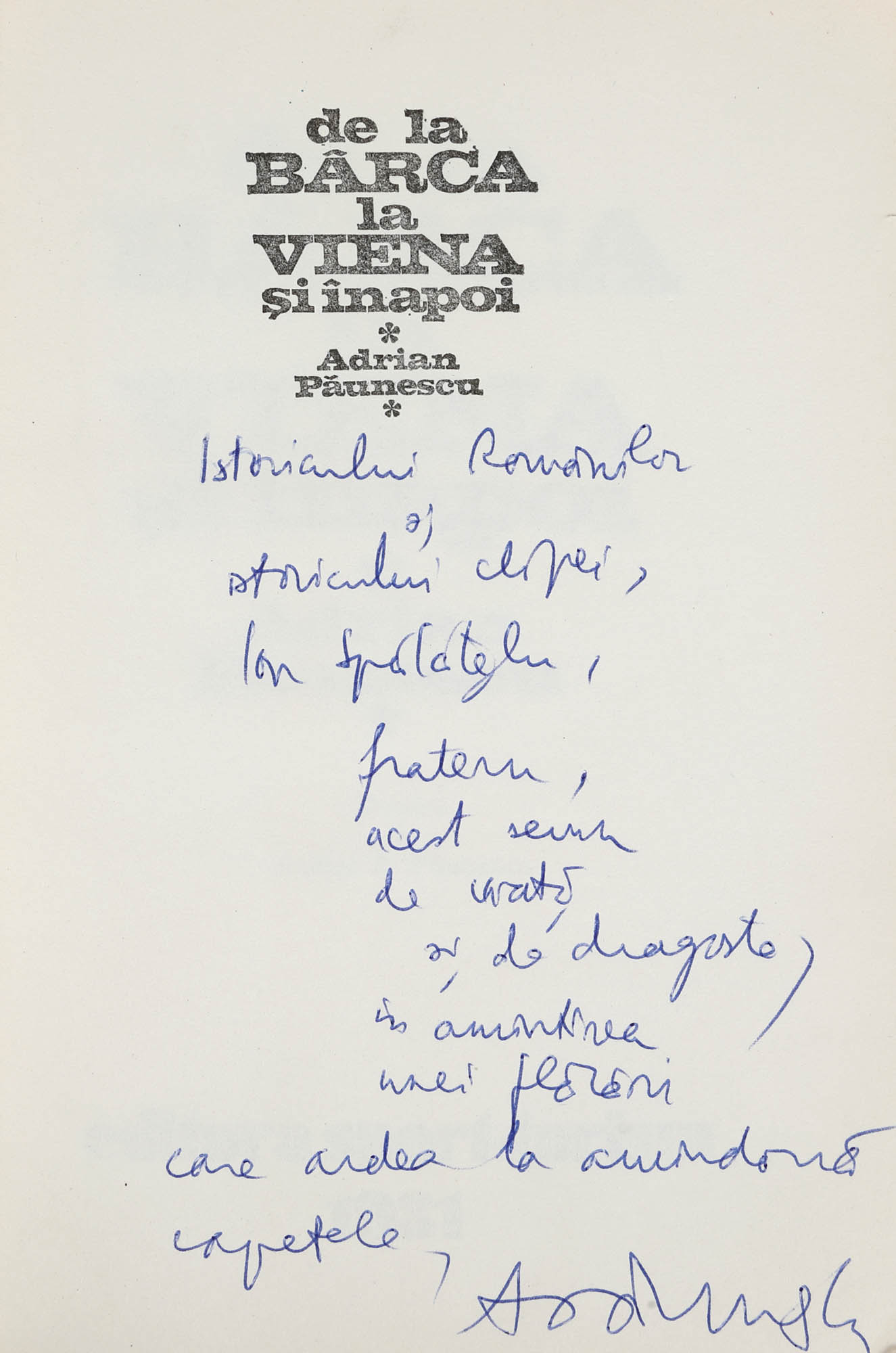 25. ”De la Bârca la Viena și înapoi”, de Adrian Păunescu, București, 1981, cu dedicația autorului