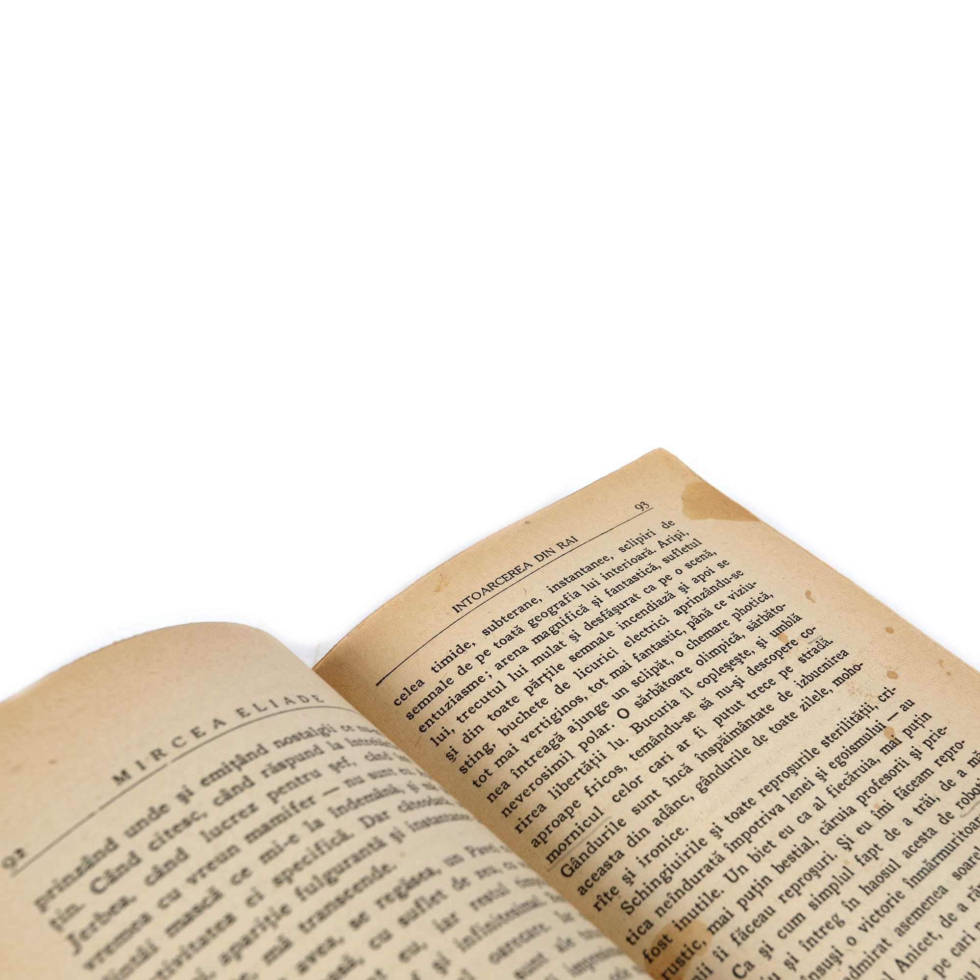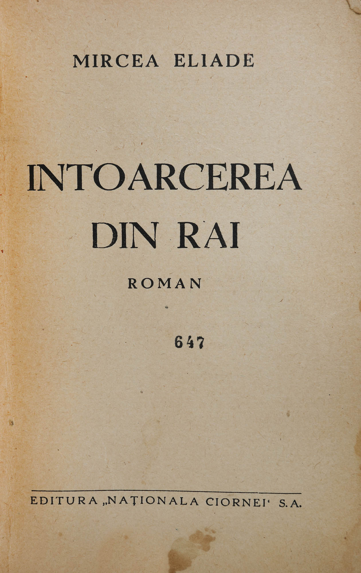 9. ”Întoarcerea din rai”, de Mircea Eliade, ediție princeps, București, 1933, cu dedicația și semnătura olografă a autorului