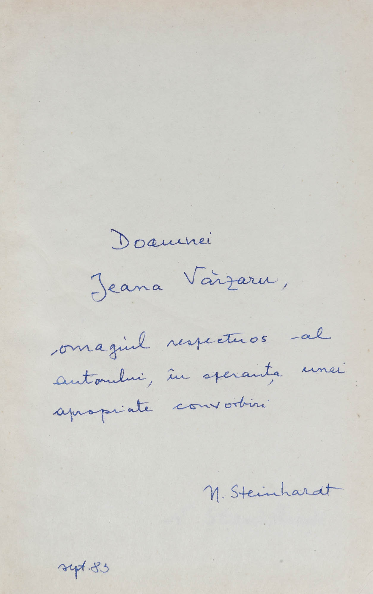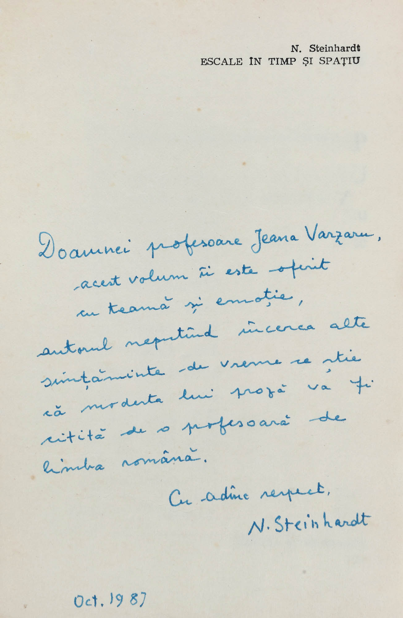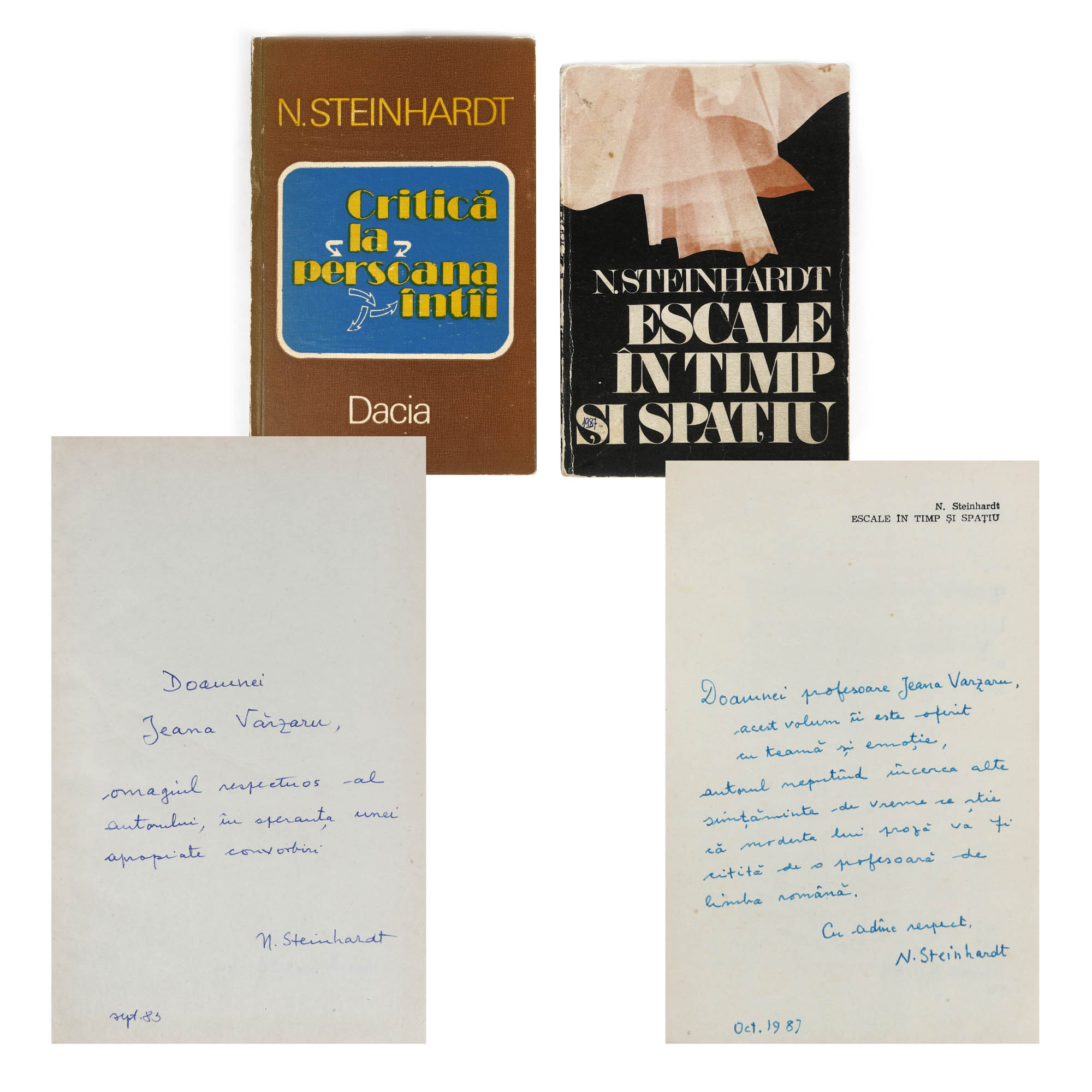 39. Lot format din două volume: ”Escale în timp și spațiu” și ”Critică la persoana întai”, de Nicolae Steinhardt, București, 1987 și 1983, cu dedicațiile și semnăturile olografe ale autorului către Ileana Vărzaru