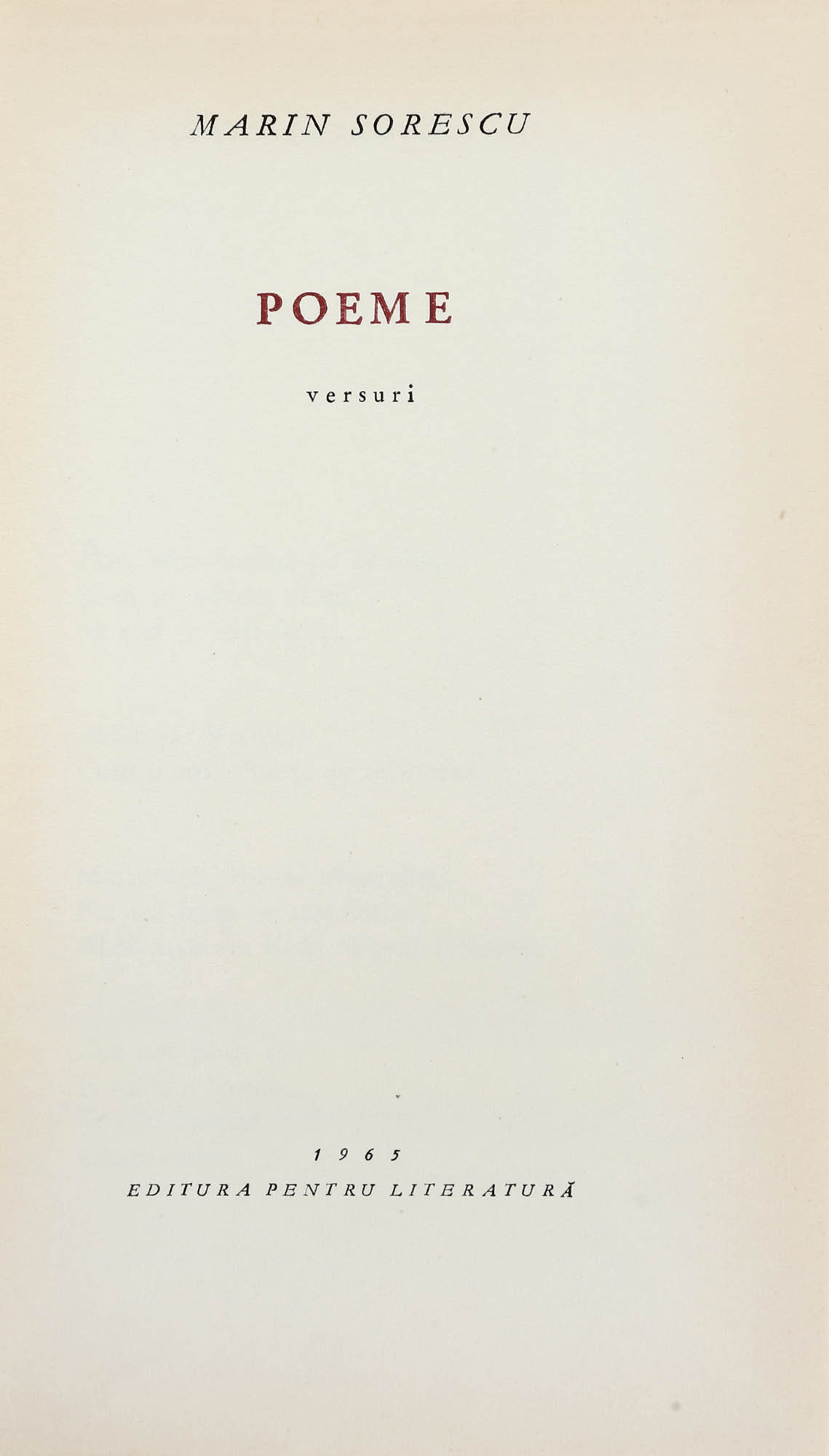 36. ”Poeme”, de Marin Sorescu, București, 1965, cu dedicația și semnătura olografă a autorului către poetul Ion Bănuță