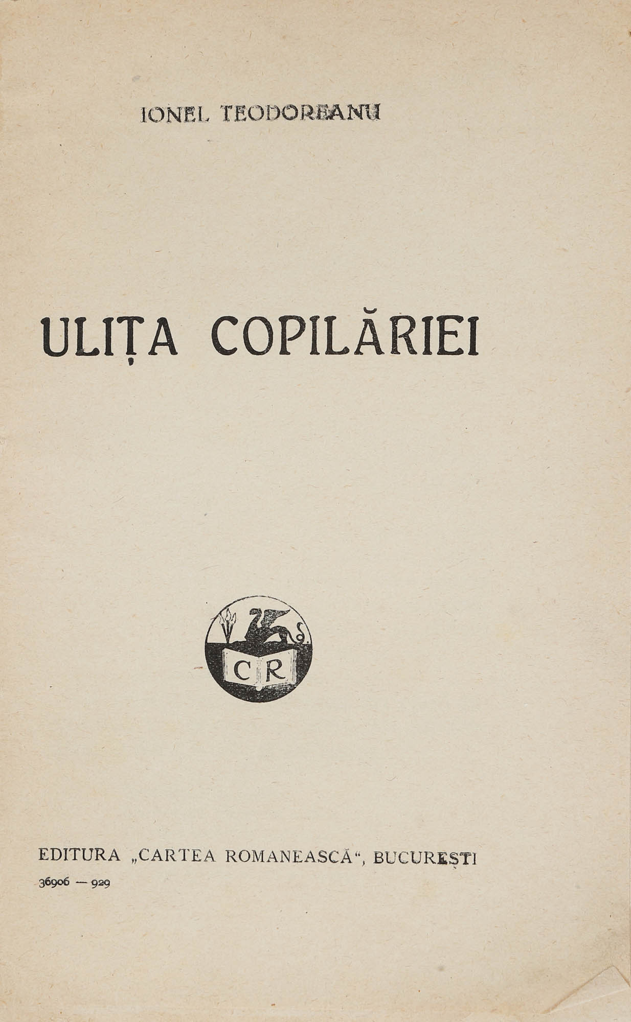19. ”Ulița copilăriei”, de Ionel Teodoreanu, București, 1929, cu dedicația și semnătura olografă a autorului