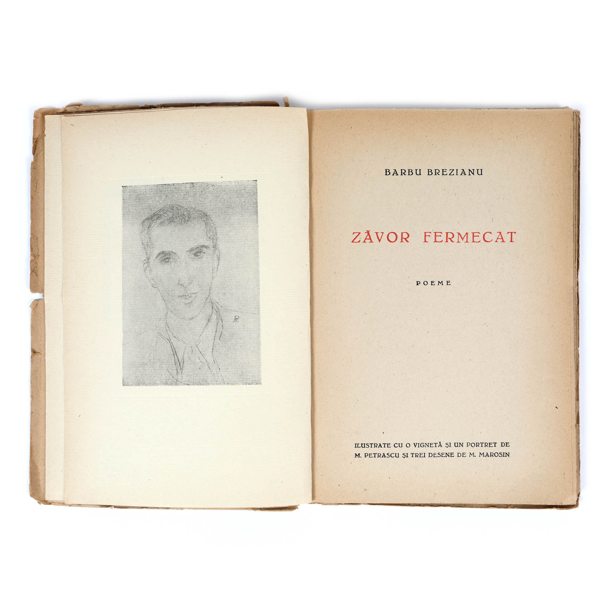 48. ”Zăvor fermecat”, de Barbu Brezianu, București, 1947, cu o vignetă și un portret de Milița Petrașcu și trei desene de Mircea Marosin, dedicația și semnătura olografă a autorului