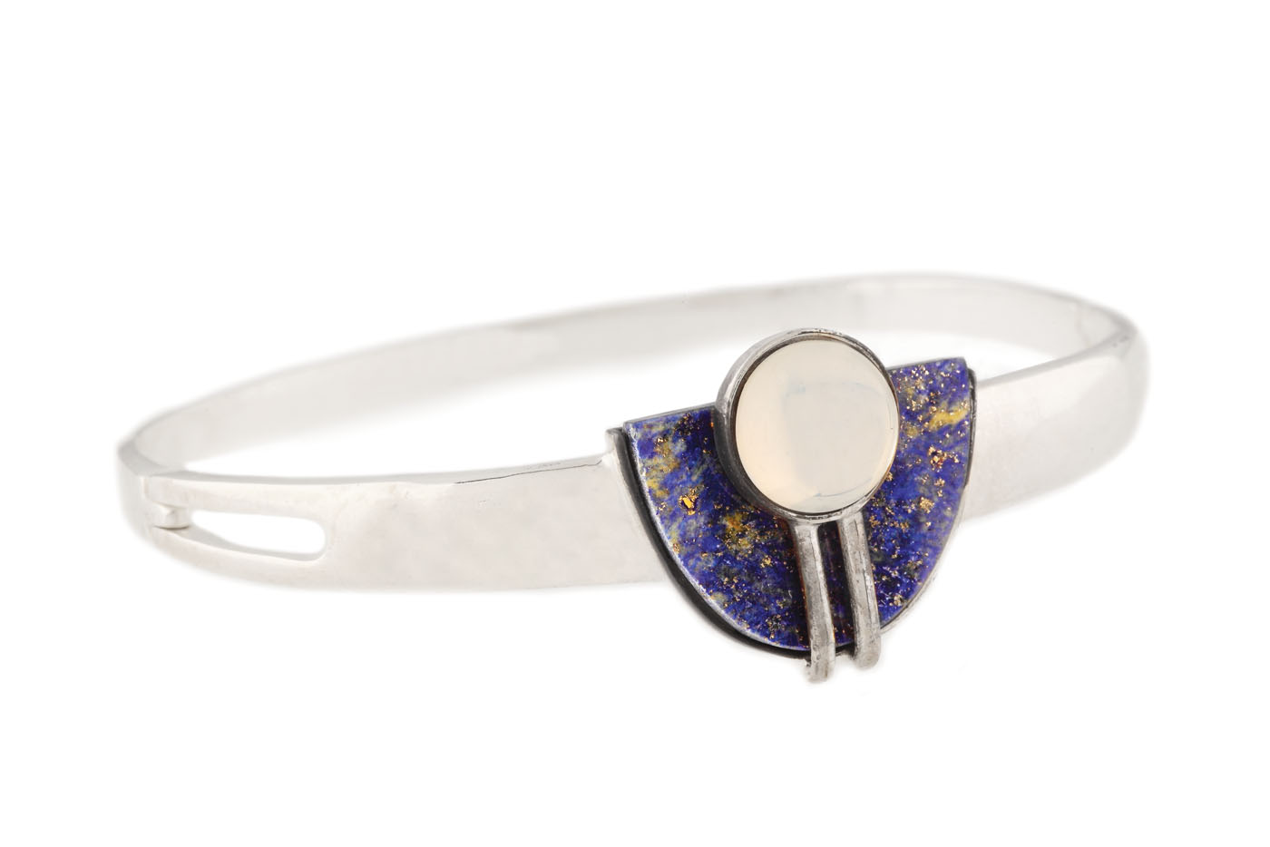 31. Brățară Elisabeth Koller, de inspirație Art Deco, decorată cu Lapis Lazuli și piatra lunii