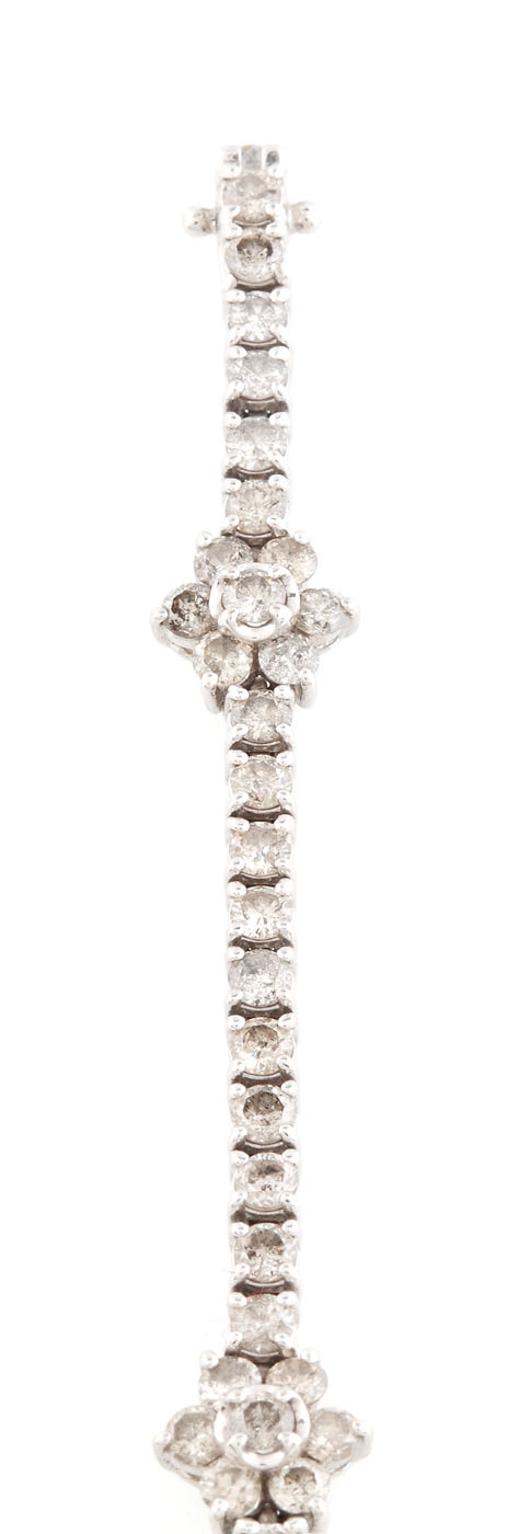 21. Frumoasă brățară tennis din aur alb, decorată cu flori de diamante