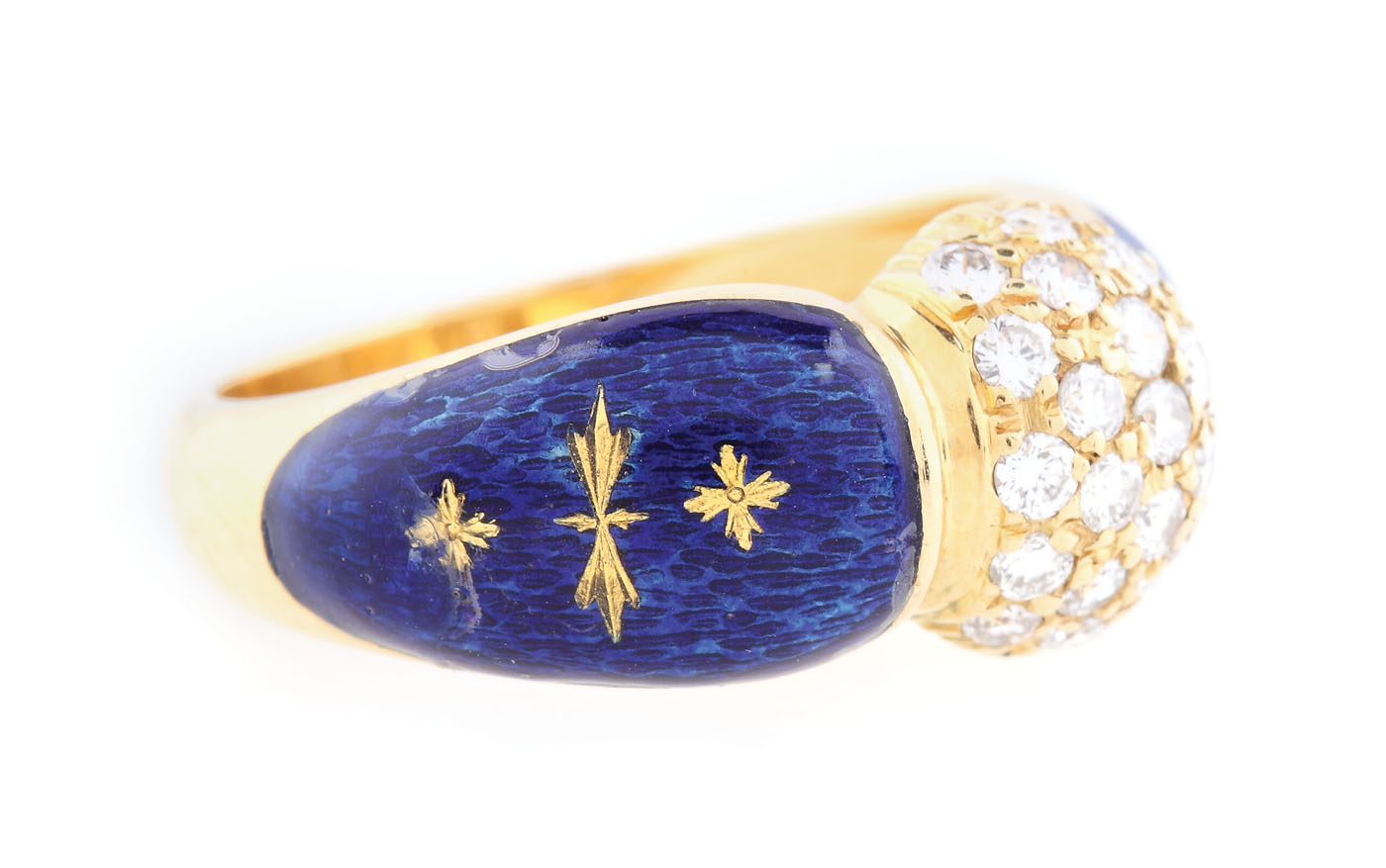 13. Inel Fabergé din aur, decorat cu diamante și email, exemplarul 20/300