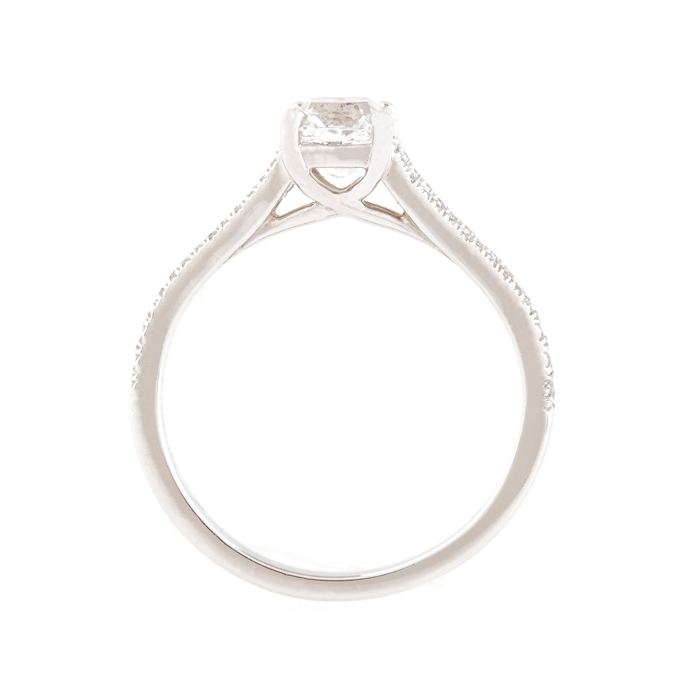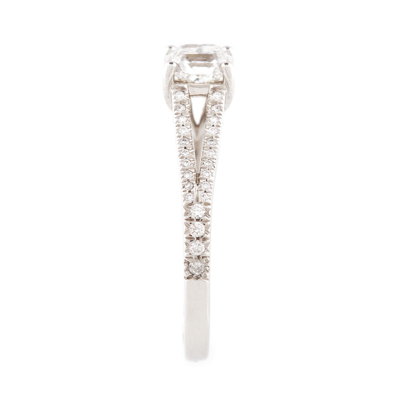 1 square faceted diamond, I-J colour, VVS clarity, ca. 0.8 ct. and 48 round brilliant-cut diamonds, G-H colour, VVS-VS clarity, ca. 0.13 ct.