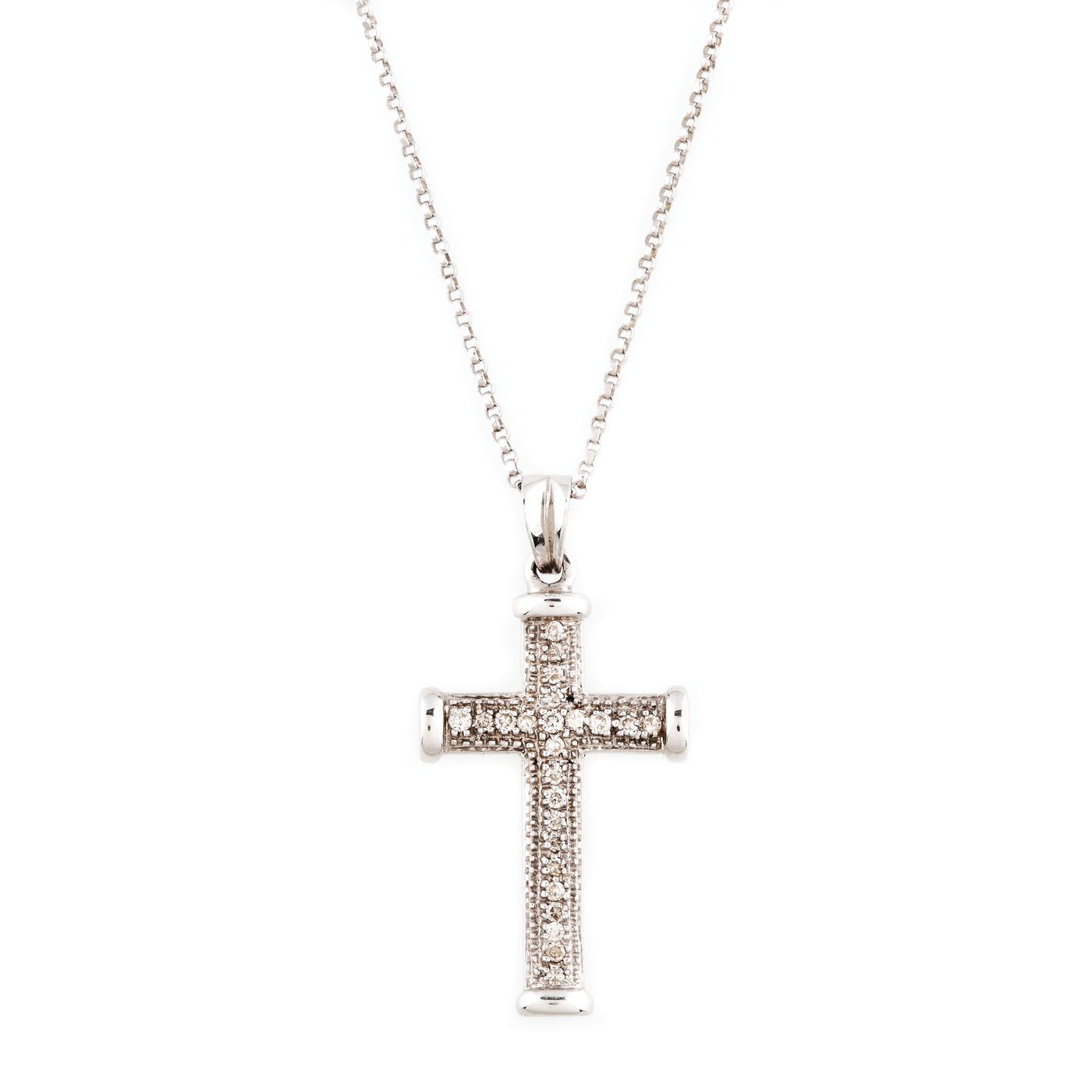 37. Lanț cu pandantiv-cruce din aur alb, decorat cu diamante
