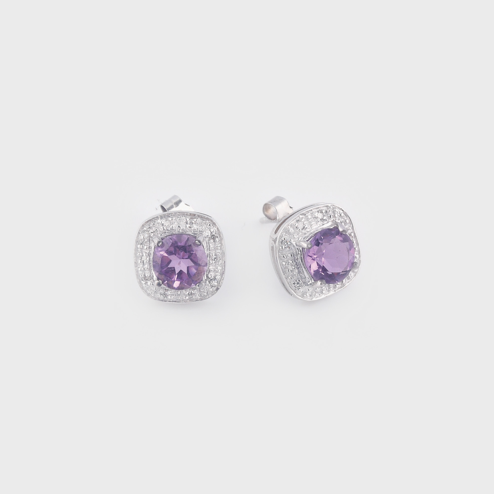 55. Delicată pereche de cercei din aur alb, decorată cu ametiste și diamante