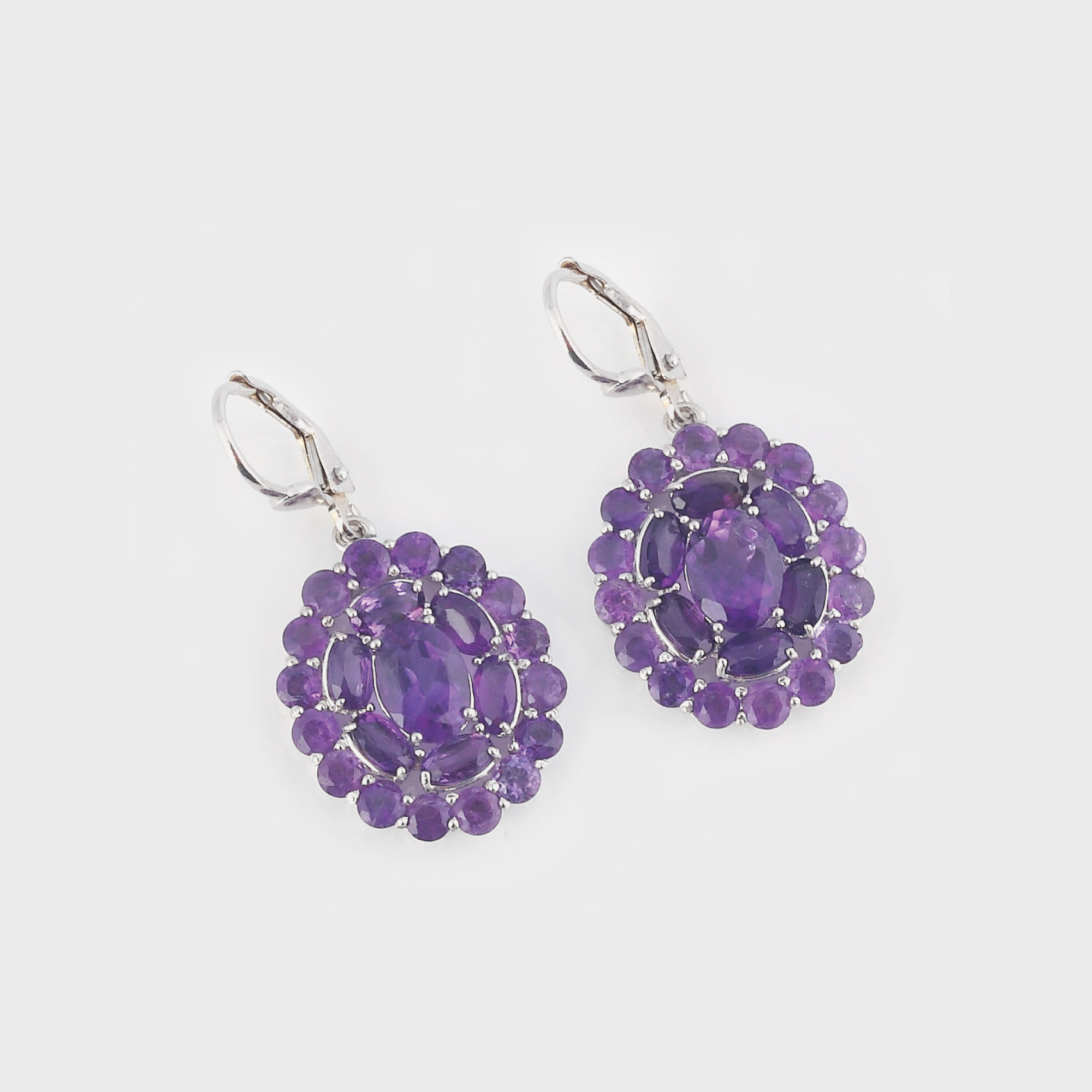 56. Impresionantă pereche de cercei din aur alb, ornată cu ametiste