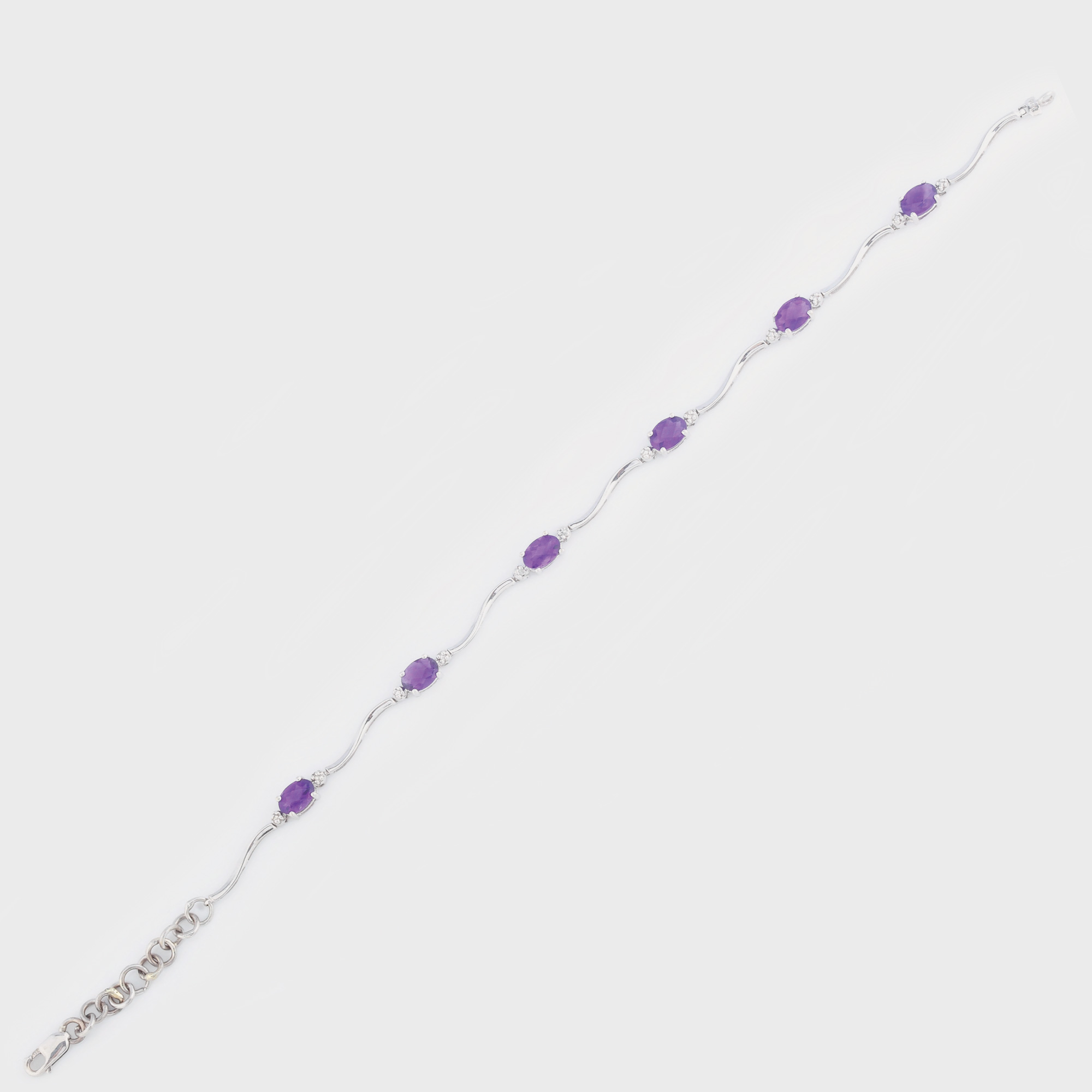 62. Delicată brățară din aur alb, decorată cu ametiste și diamante