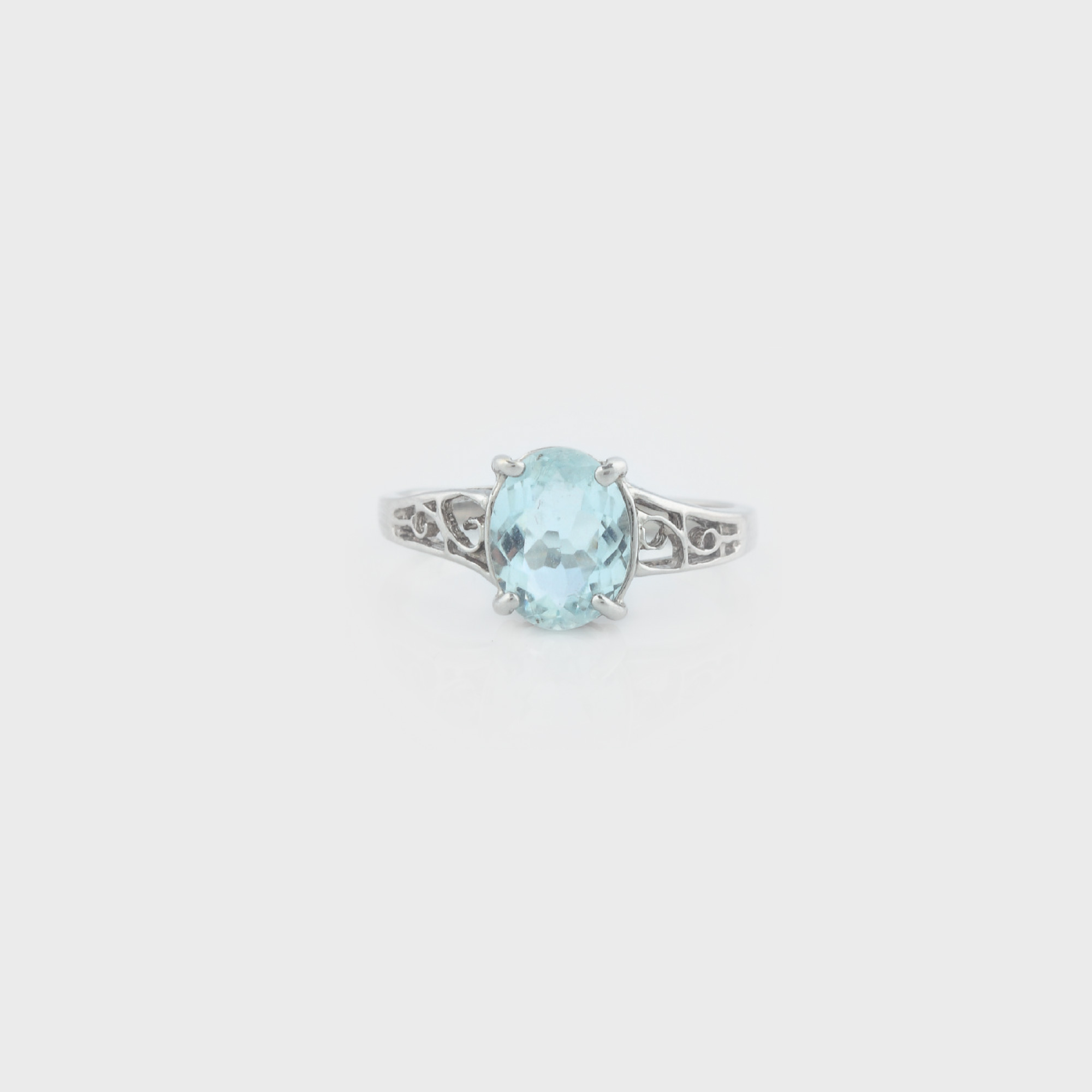 65. Inel din aur alb, decorat cu acvamarin
