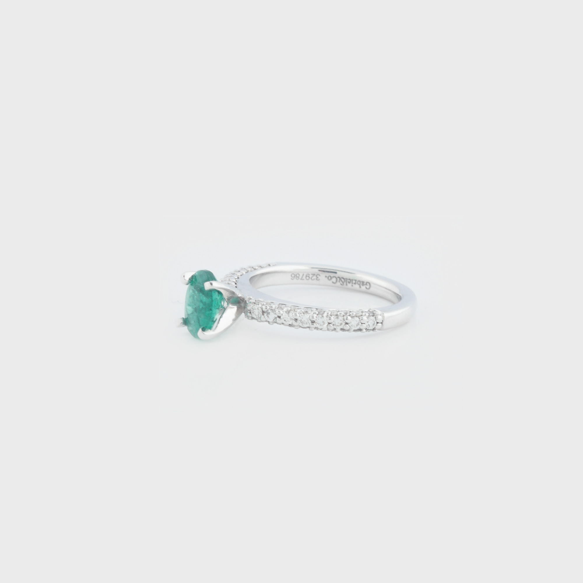 88. Inel din aur alb, ornat cu smarald anturat de diamante