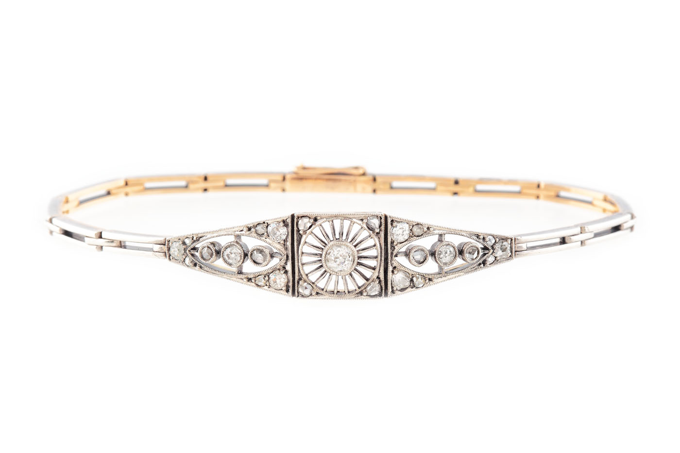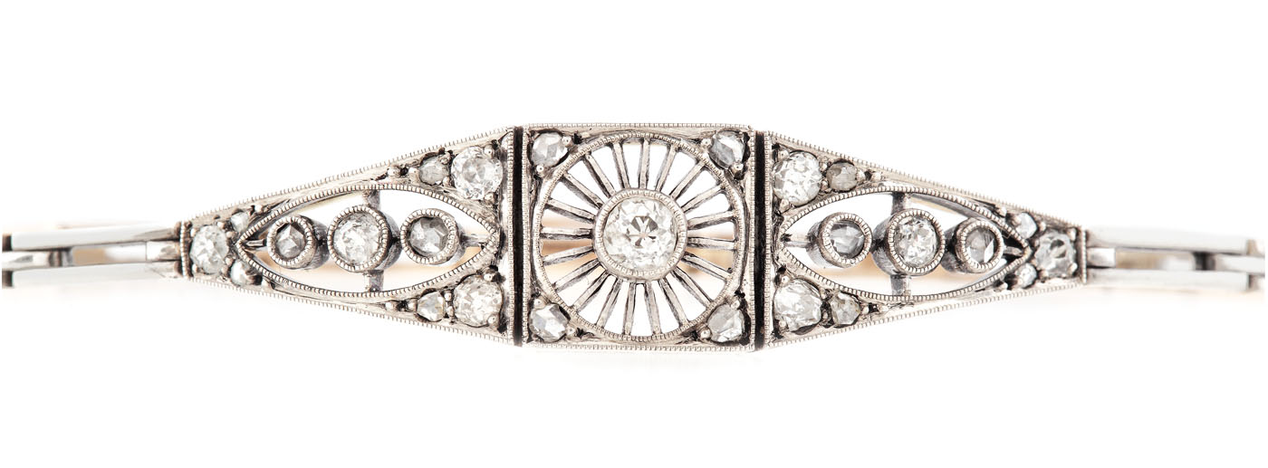 95. Delicată brățară din aur, decorată cu diamante, executată manual