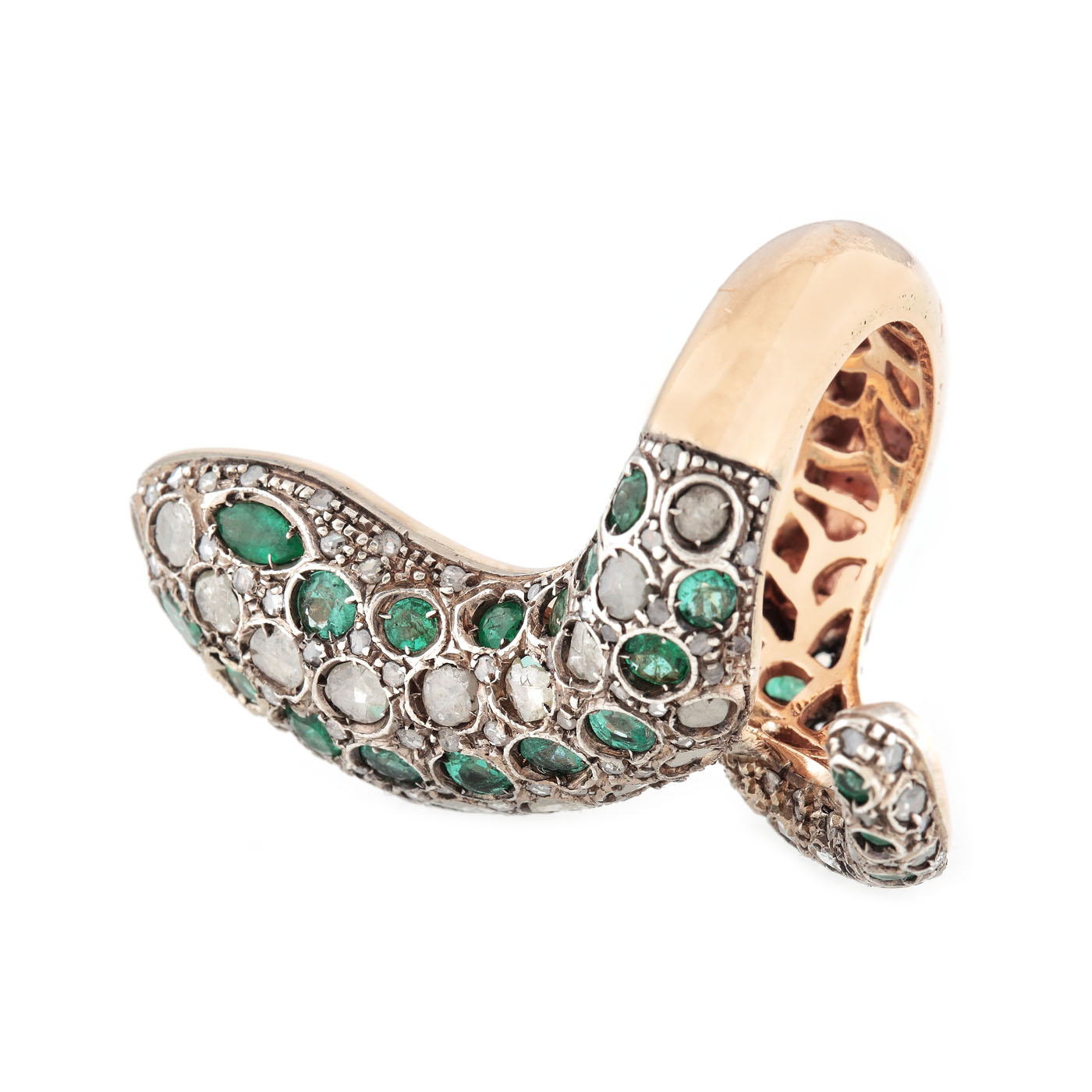 72. Inel din aur și argint, în formă de șarpe, decorat cu smaralde și diamante