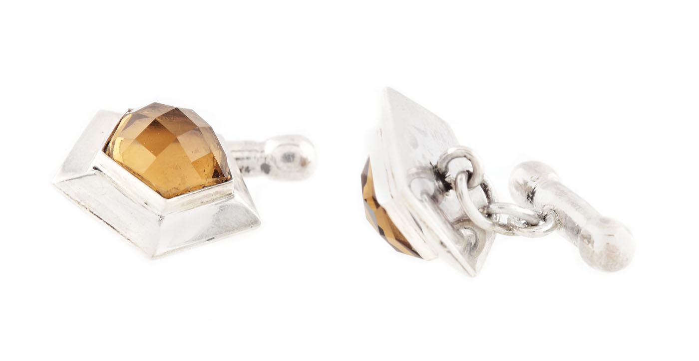 64. Pereche de butoni Art Deco din argint, decorată cu cuarț fumuriu