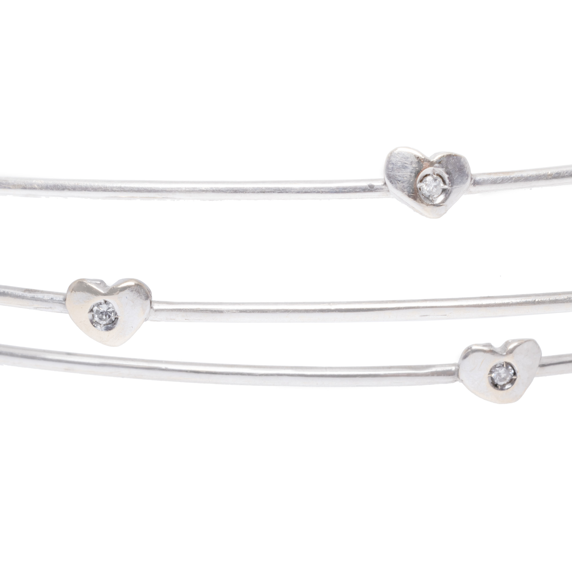 50. Brățară fixă din aur alb, decorată cu inimioare cu diamante