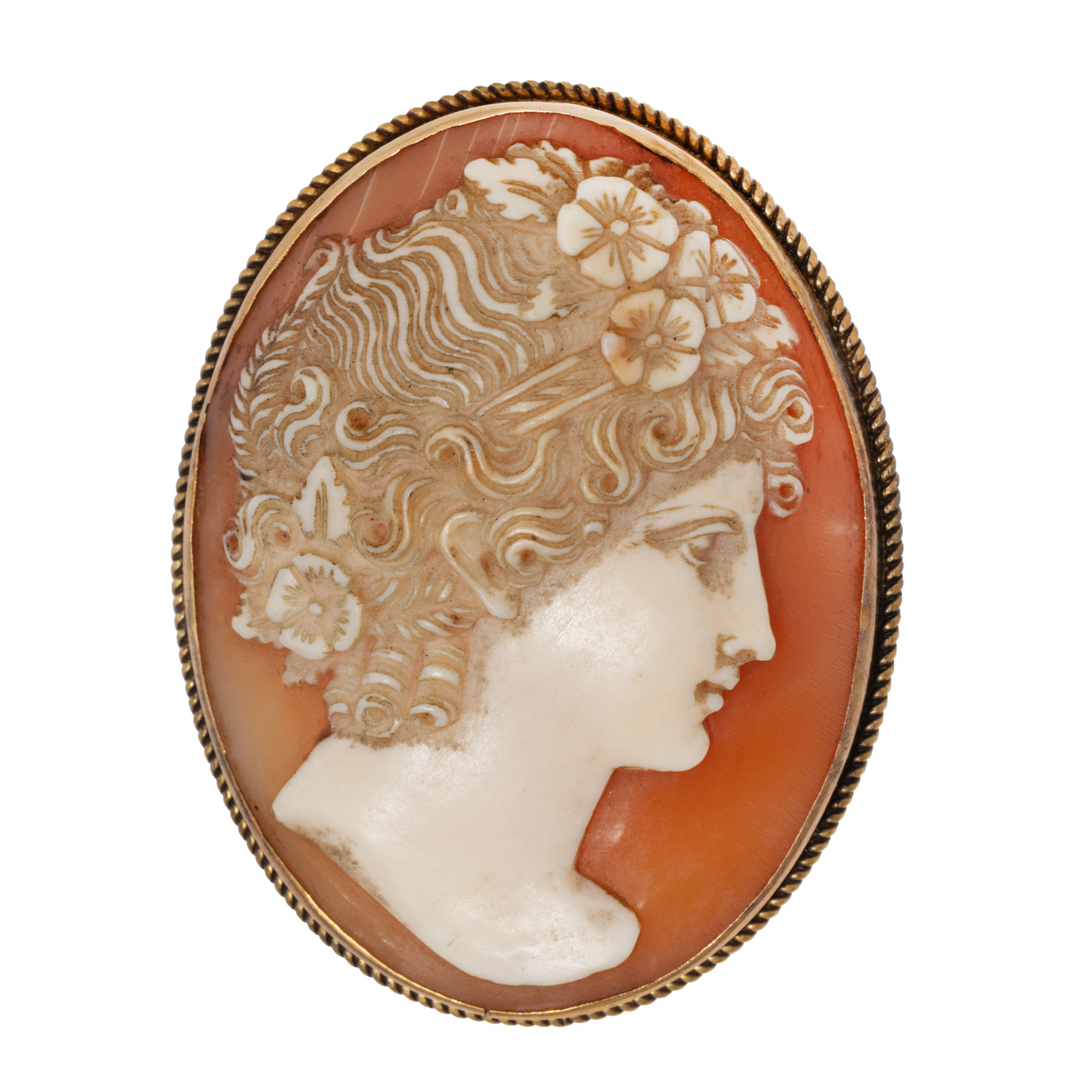 77. Broșă din aur și camee, decorată cu profil feminin