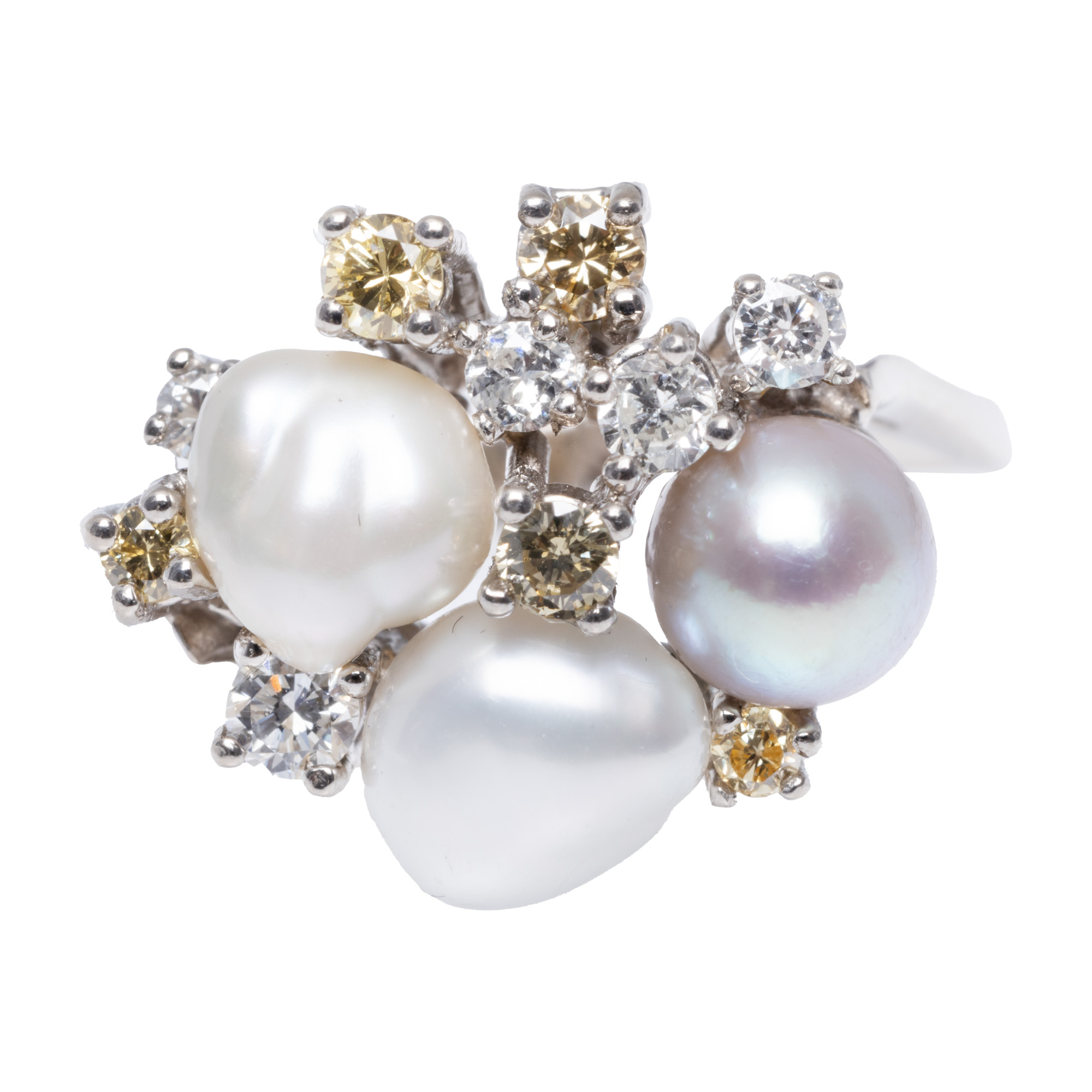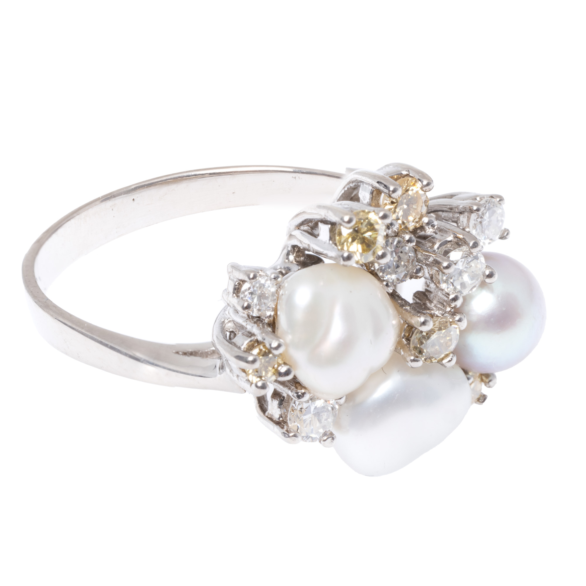 67. Inel din aur alb, decorat cu diamante și perle Akoya, însoțit de certificat gemologic suplimentar
