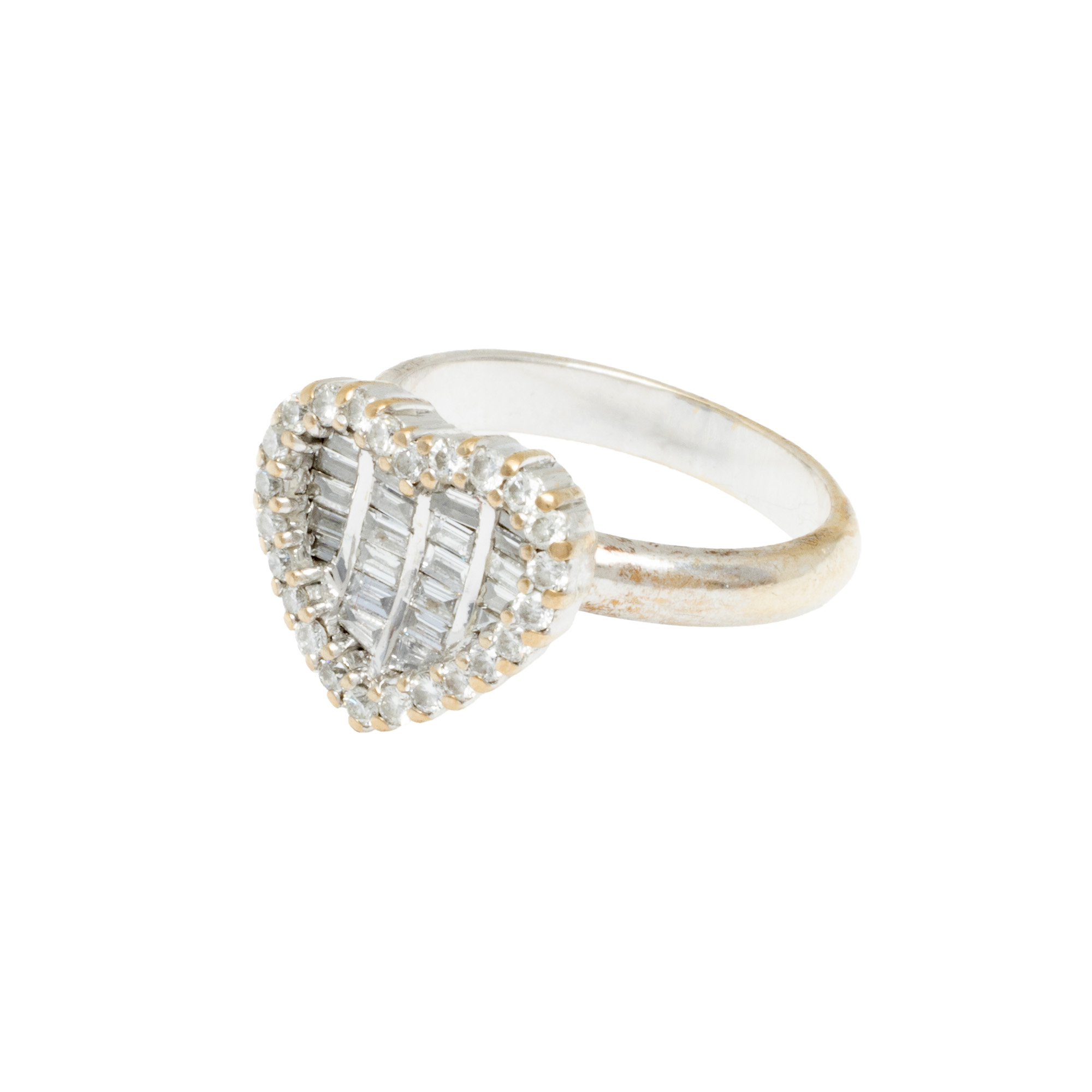 49. Inel din aur alb, sub formă de inimă, pavat cu diamante, însoțit de certificat gemologic suplimentar