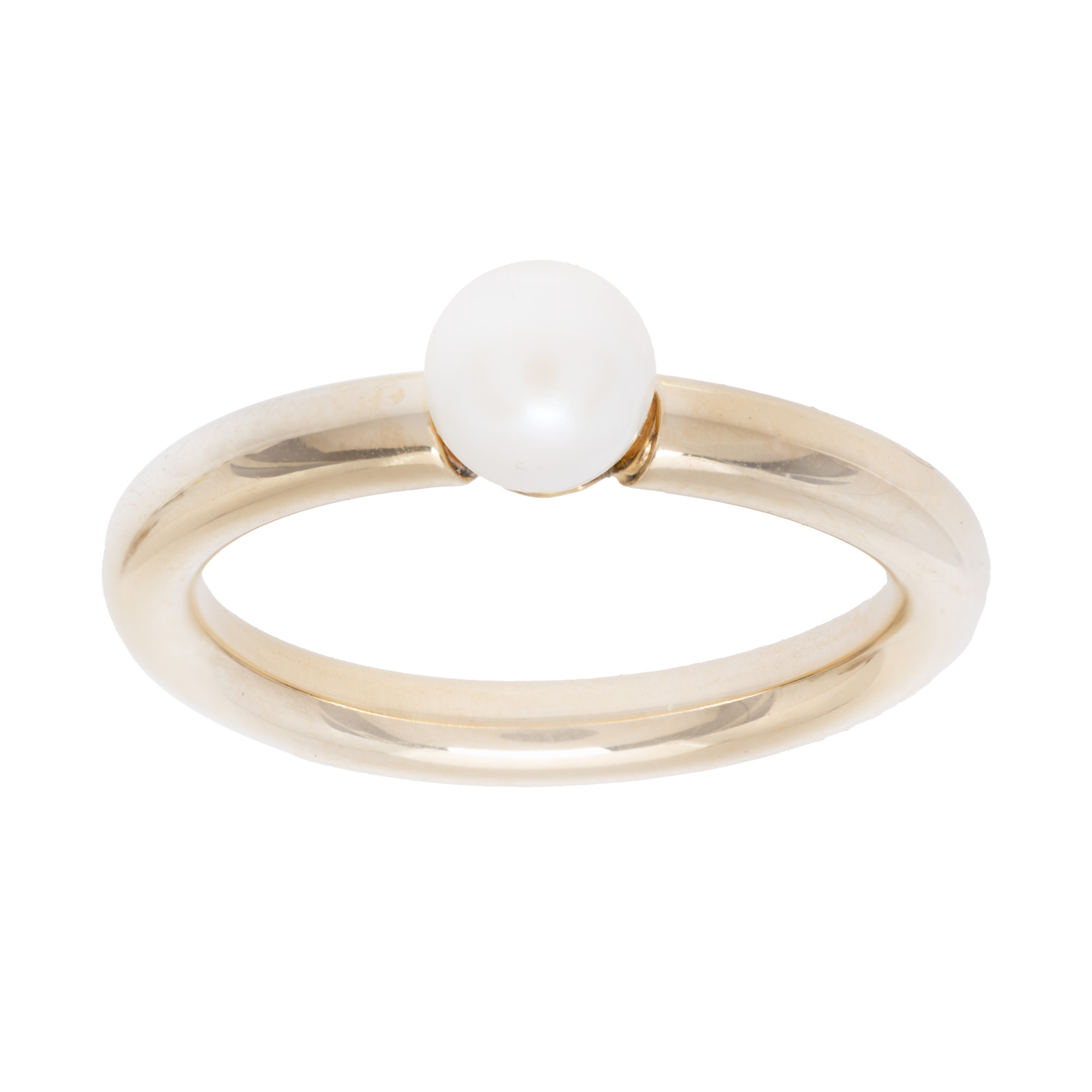 53. Inel din aur, decorat central cu o perlă