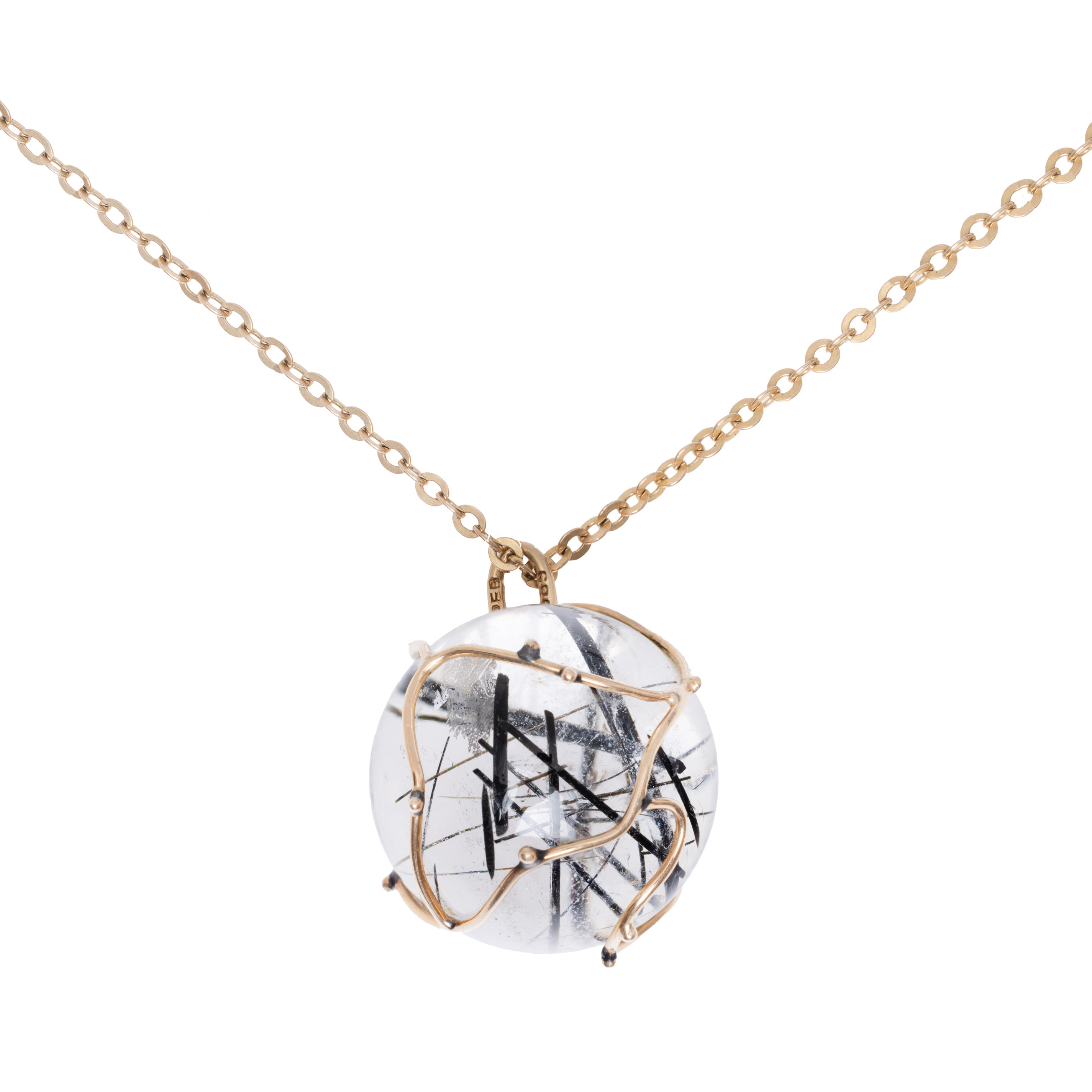 59. Lanț cu pandantiv din aur, decorat cu cuarț rutilat, însoțit de certificat gemologic suplimentar