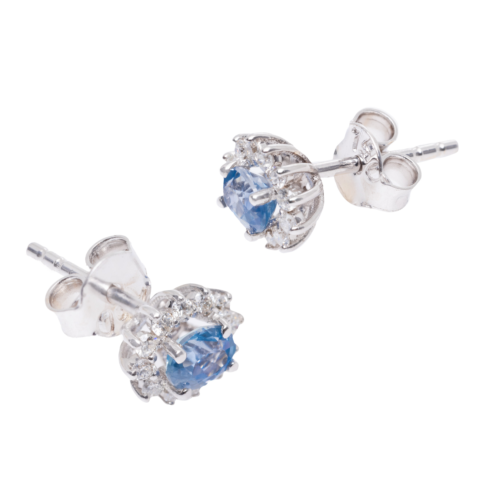 2 safire oval fațetate, culoare albastru, claritate SI, cca. 0,49 ct. și 24 diamante rotunde briliant, claritate SI, cca. 0,17 ct.